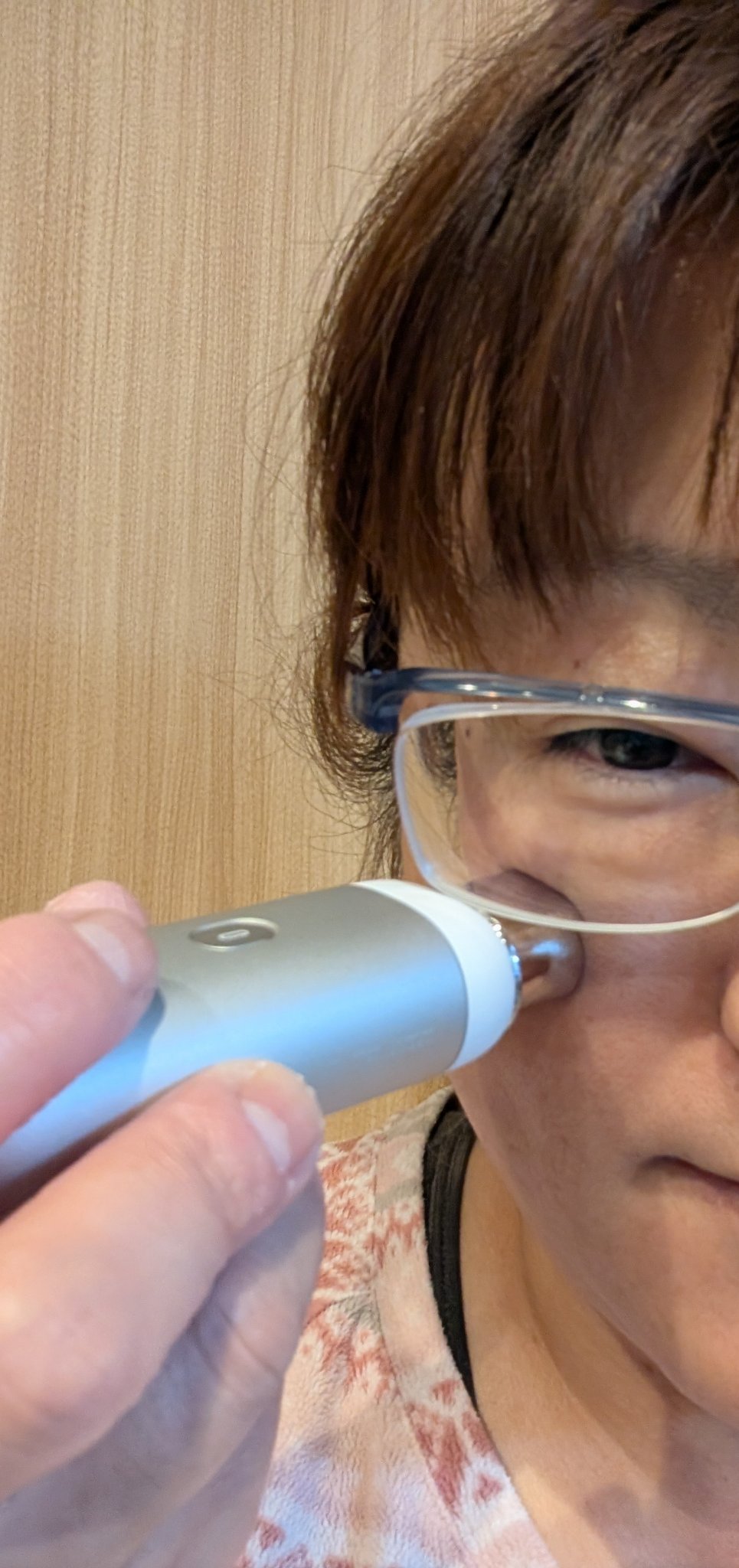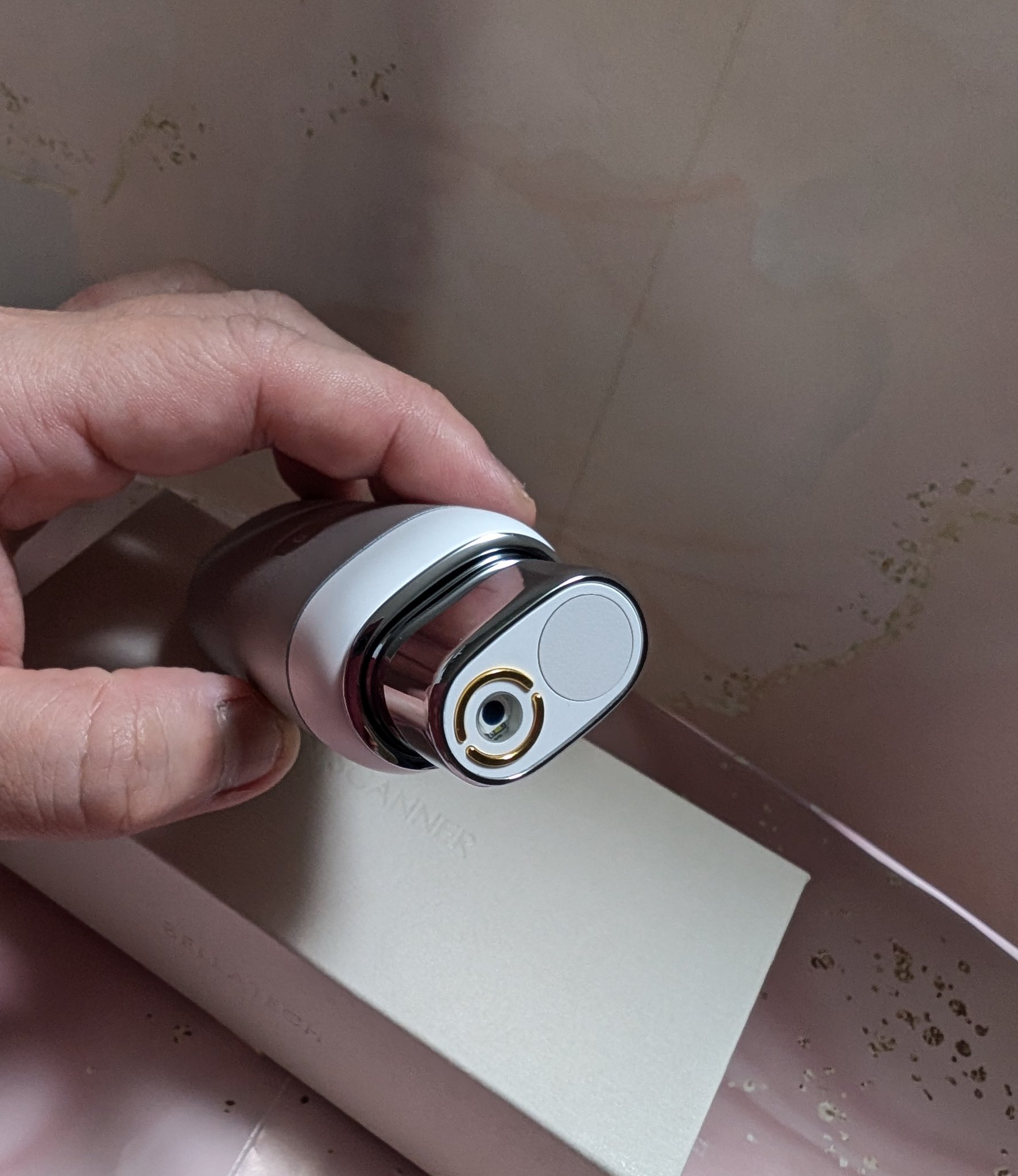 毎日の肌状態を測定し、肌リズムを可視化してくれるAIスキンスキャナー。スマホにアプリをインストールし、スキャナーとBluetooth接続。あとは測定ボタンを押して、スキャナーを肌に押し当てるだけ。すぐに小さな振動を感じ、それで測定終了!数秒後...