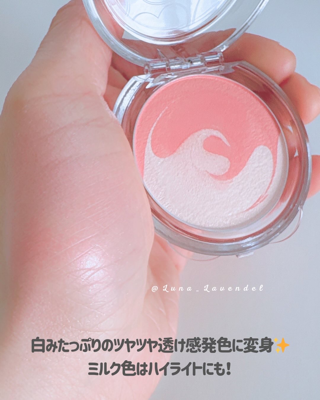 これ、アイベースとしてはもちろんチークベース使いが至高👑 色白の人のまぶたに透けるような透明な紫陽花色(白みがほぼ無く、花びらの抽出液のような色)×みずみずしいのに伸ばすと無重力になるテクスチャーが絶妙。 青みカラーも 青みじゃないカラーも そのままばっちり発色。