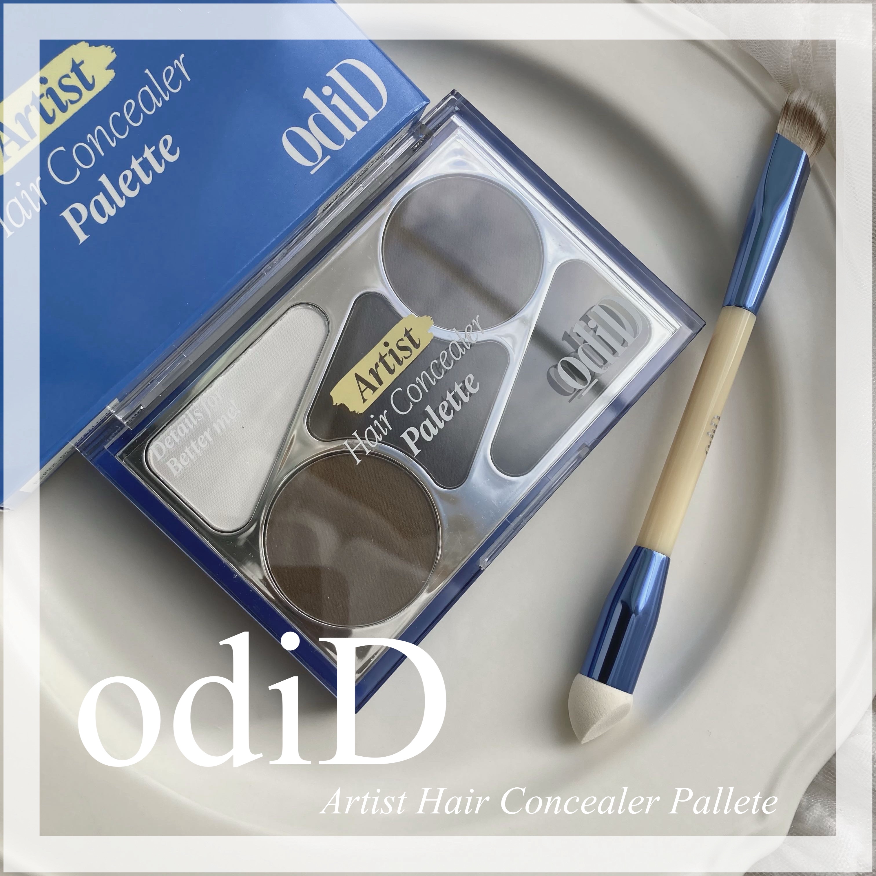 \ヘアラインの悩みに/オーディッドヘアコンシーラーパレット&デュアルブラシ 生え際、分け目など、気になる部分をカバーできるヘアパレット✯*・頭皮や毛髪を健やかに保つ黒豆エキス+黒米エキスを配合しているそう😌使い方は簡単❁①おしろいパウダーで頭...
