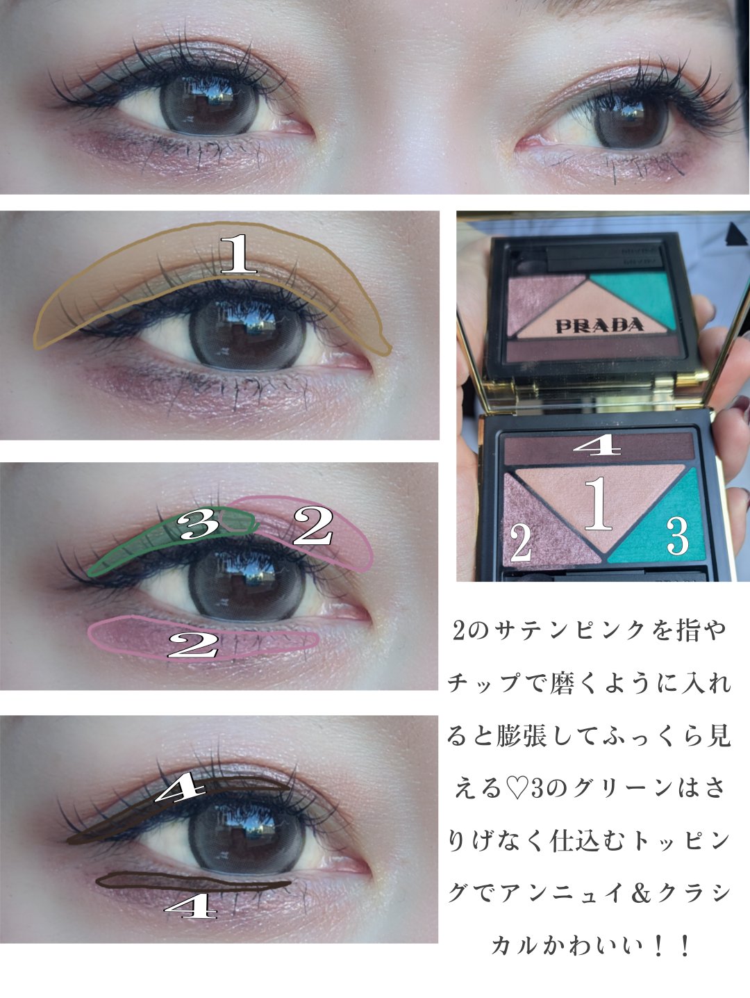 .✔︎PRADA #ダイメンションズマルチエフェクトアイシャドウ ∟09プリムラ.先日伊勢丹新宿店とmeecoで先行発売された新色✨09はウォームブラウン系の組み合わせで右下にはグリーンの偏光ラメ粉質は既存と同じくしっとりしてて粉っぽさなし◎...