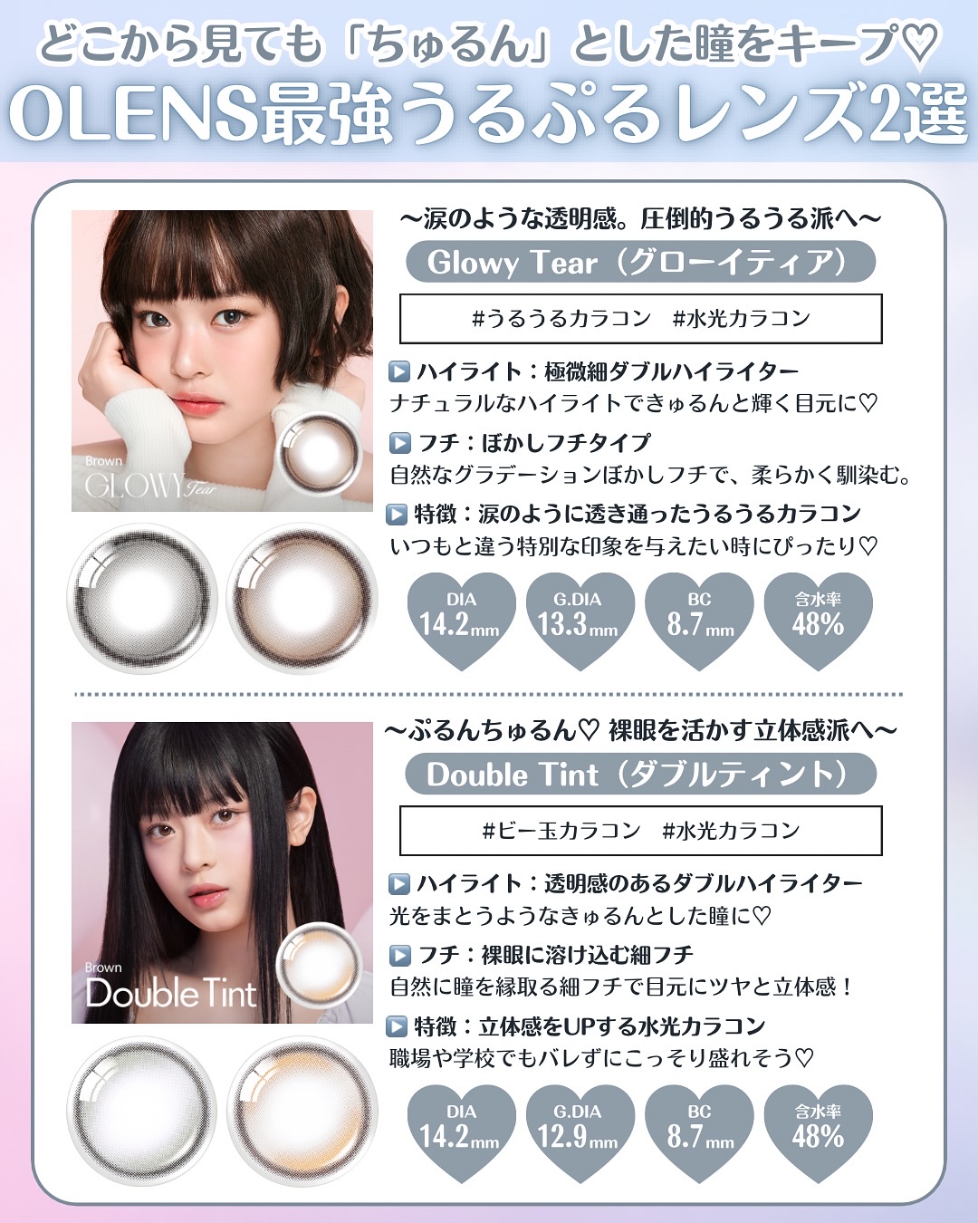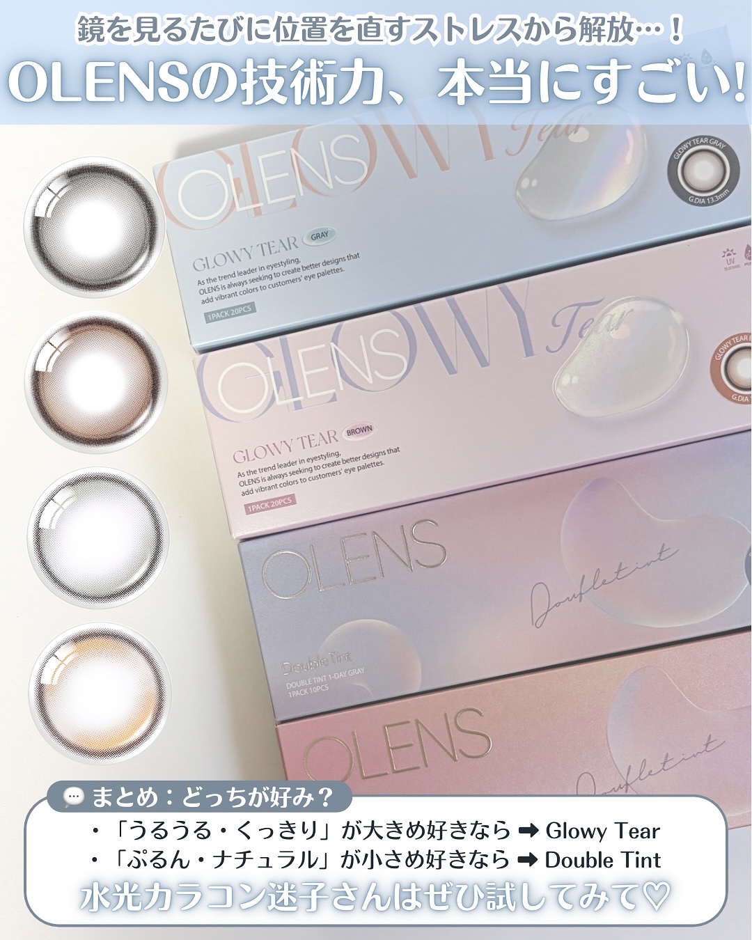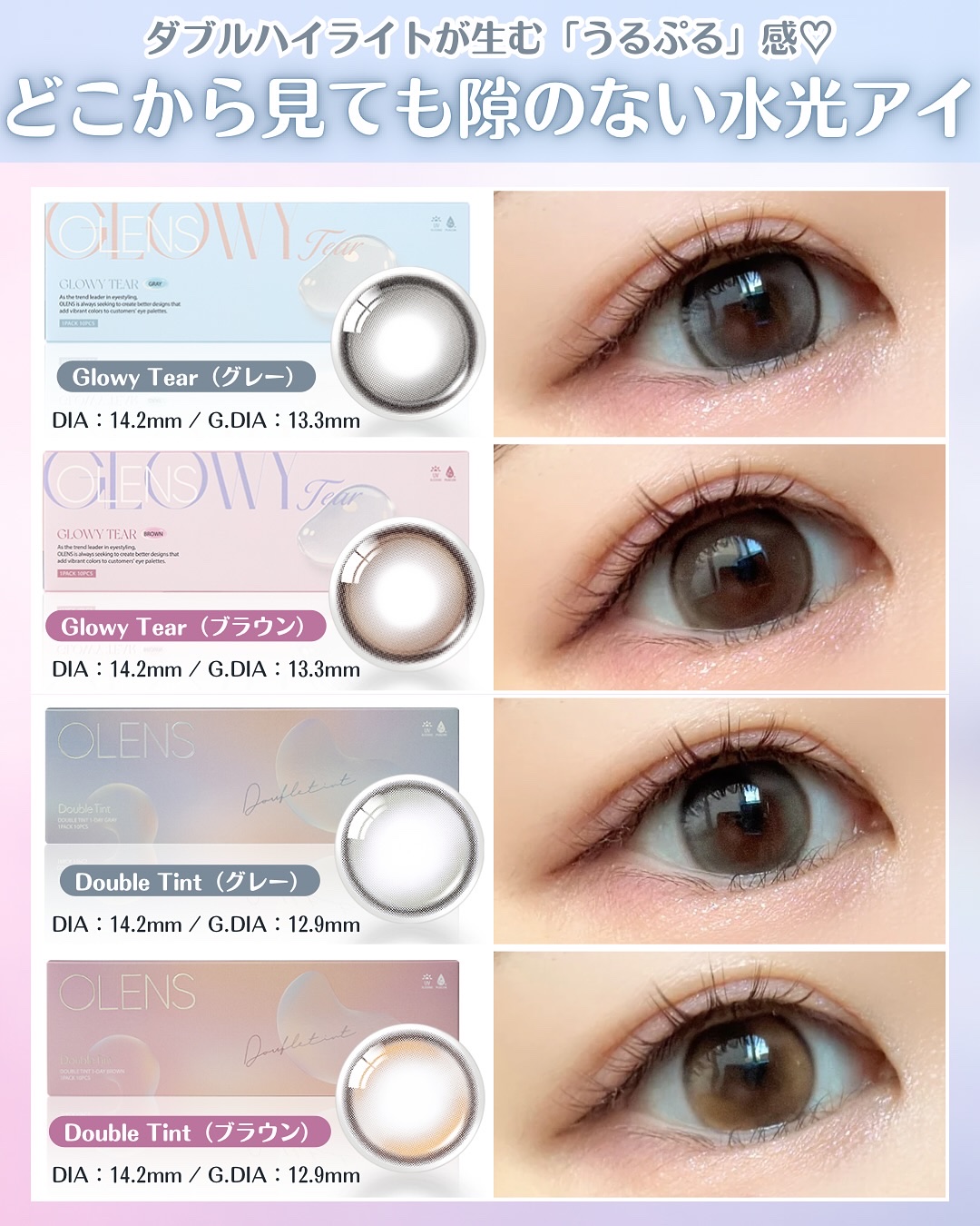 \うるうるカラコン/OLENSGlowyTear1DayBrown/GrayDoubleTint1DayBrown/Gray◆GlowyTear1Day新作は上下で太さの違ううるうるダブルハイライターが可愛すぎる🤍極微細ダブルハイライターと...