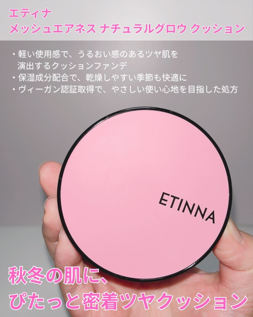 🫧ETINNAMeshAirnessNaturalGlowCushion21C/22N/23N季節の変わり目や冬の乾燥が気になる時期でもひと塗りでしっとりツヤが続くETINNAのクッションファンデーション❤️薄膜でふわっと密着するのに朝のうる...