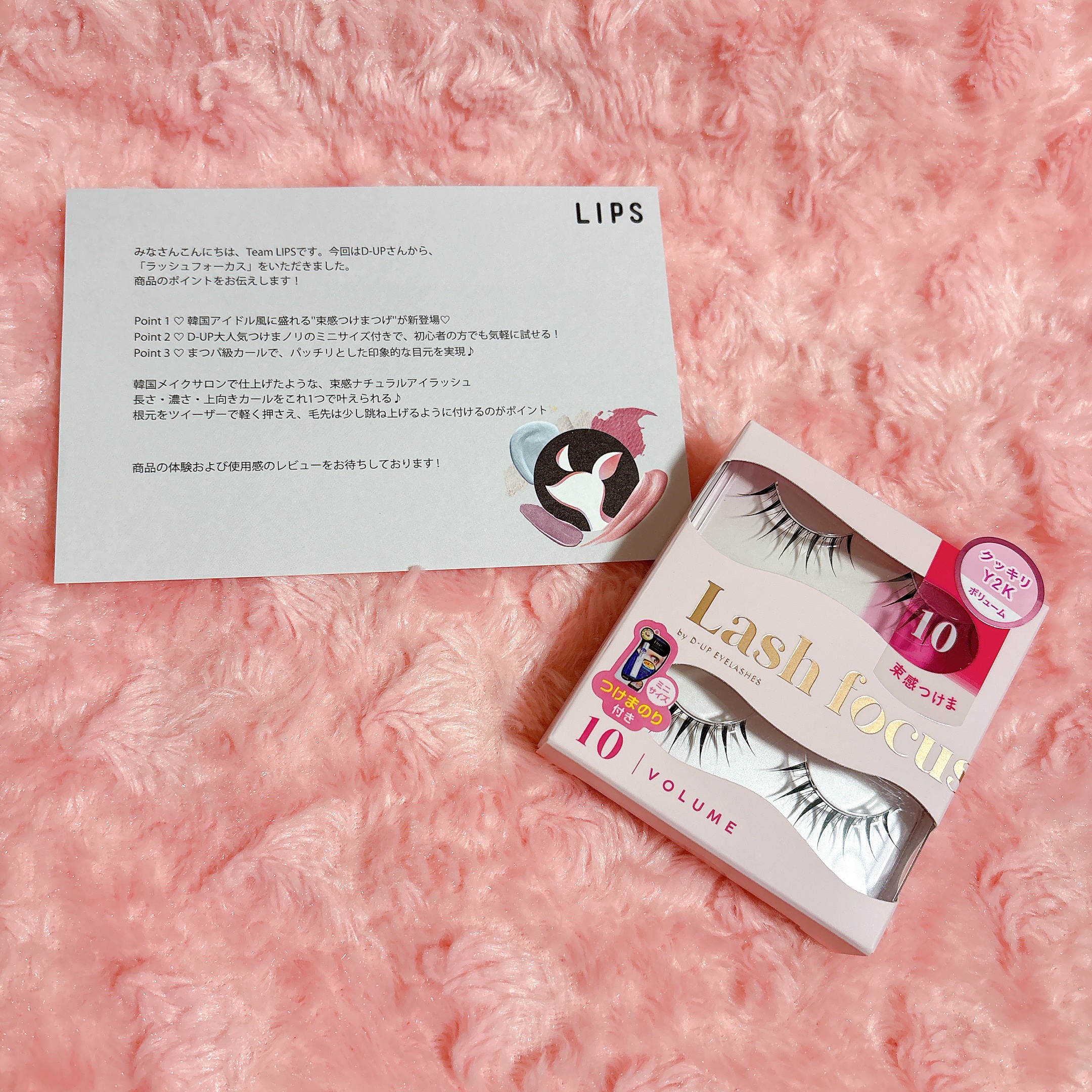 【使った商品】D-UPラッシュフォーカス10¥1,320【商品の特徴】★韓国アイドル風に盛れる「束感つけまつげ」が新登場♡★D-UP大人気のつけまノリのミニサイズ付きで、初心者の方でも気軽に試せる!★まつパ級カールで、パッチリとした印象的な目...