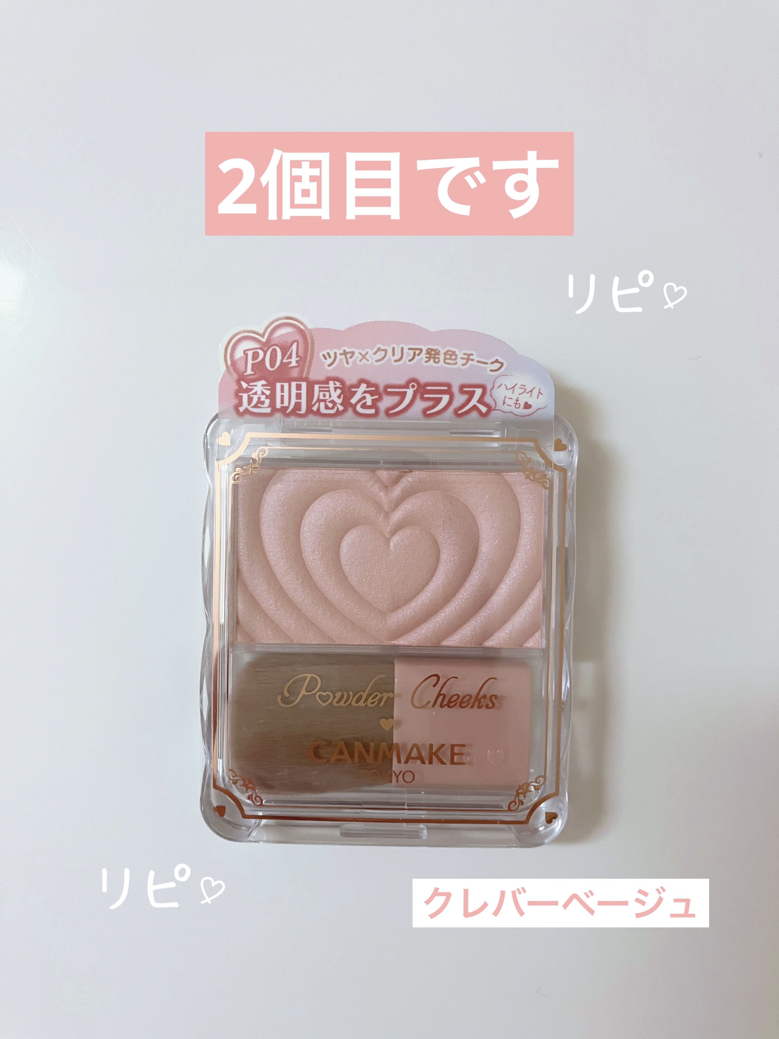 ハートがかわいい🩷キャンメイクのパウダーチーク、P04クレバーベージュです♪すっぴんで頬の赤みが目立っているのが気になって、チークが苦手なんです😔コチラをつけると赤みが目立たなくなって、薄らピンク色になりました☺️青いパールなのでブルベさん向...