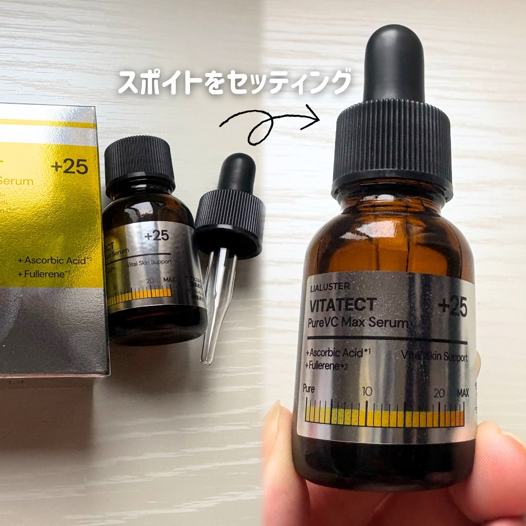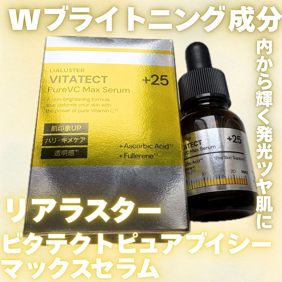 LIALUSTER⌇@lialuster_official〖ビタテクトピュアVCマックスセラム〗ピュアビタミンC25%と植物由来フラーレンを組み合わせた、シンプル処方の集中ケア美容液💛̖́-テクスチャーはみずみずしくて、3〜5滴をなじませるだ...