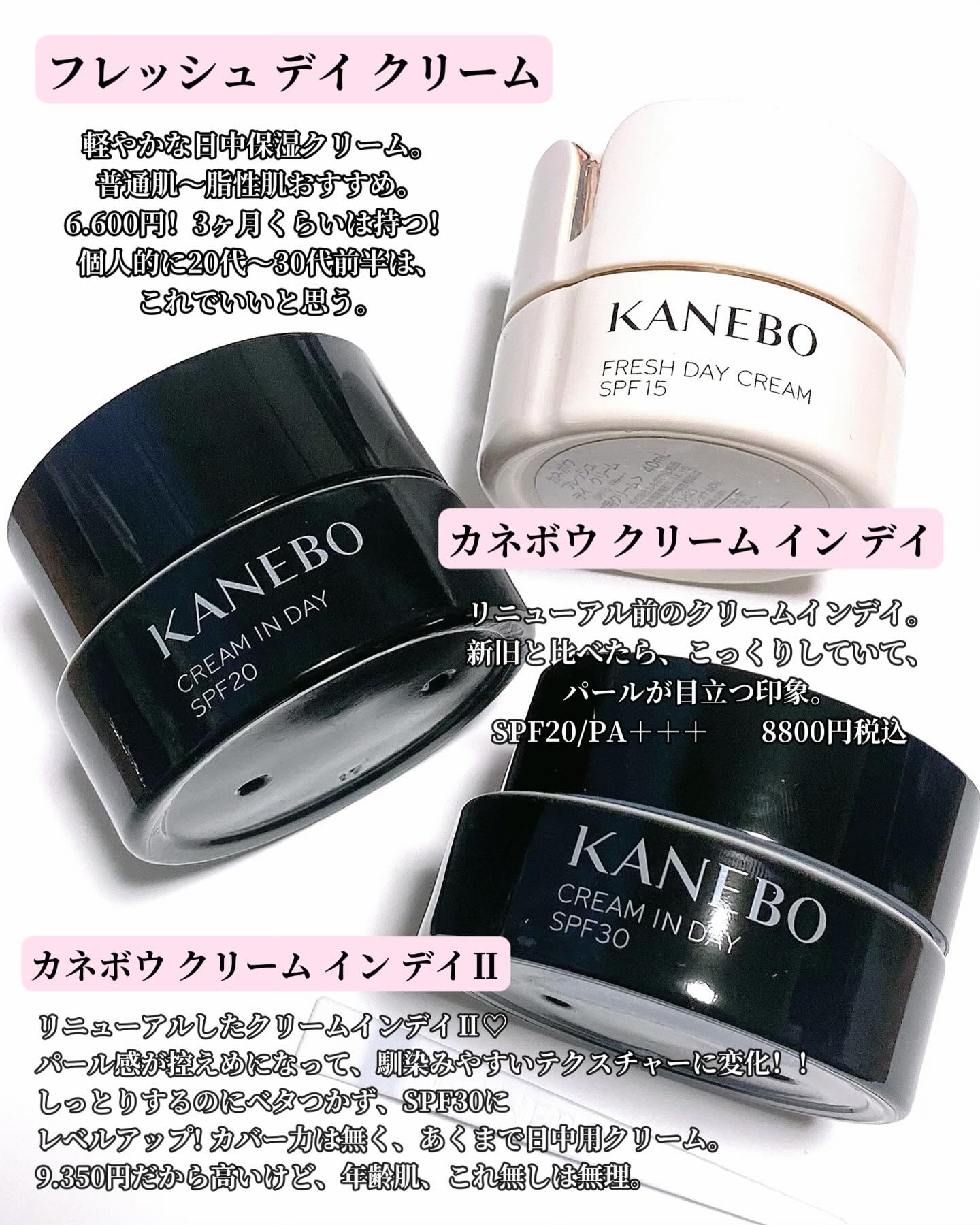 KANEBOの人気のデイクリーム フレッシュの方は使った事なかったけどこちもめちゃくちゃ良かった! フレッシュの方は脂性肌さんや朝はスッキリすませたいという方にいいかもでもどちらもちゃんと保湿はしてくれるので デイクリーム使うとメイクのりも持ちも良くなるのでおすすめです👌