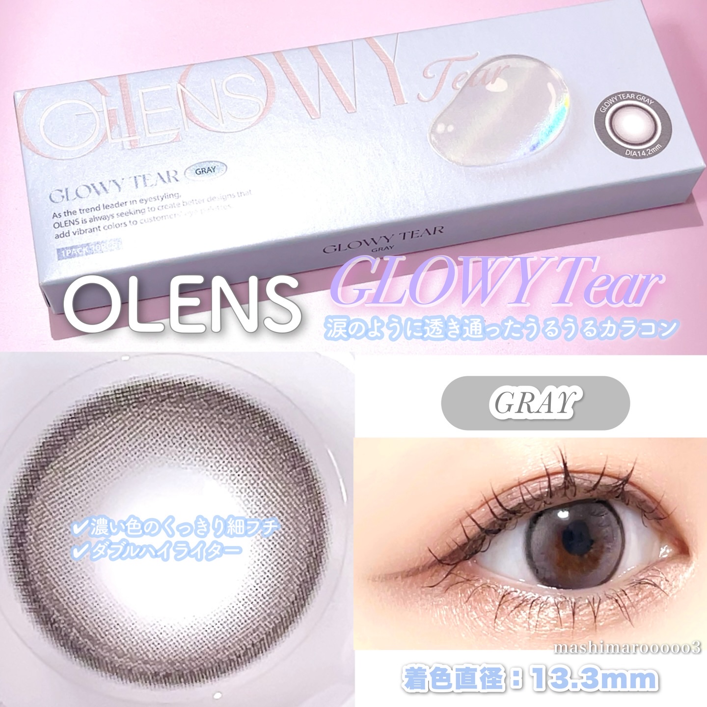 𓆸\大人可愛いアッシュ系カラコン3選!/OLENS回っても気にならないダブルハイライターカラコン! \うるうるカラコン/●GlowyTear〈Gray.Brown〉1DayDIA14.2mm着色直径13.3mm含水率48%涙のように透き通っ...