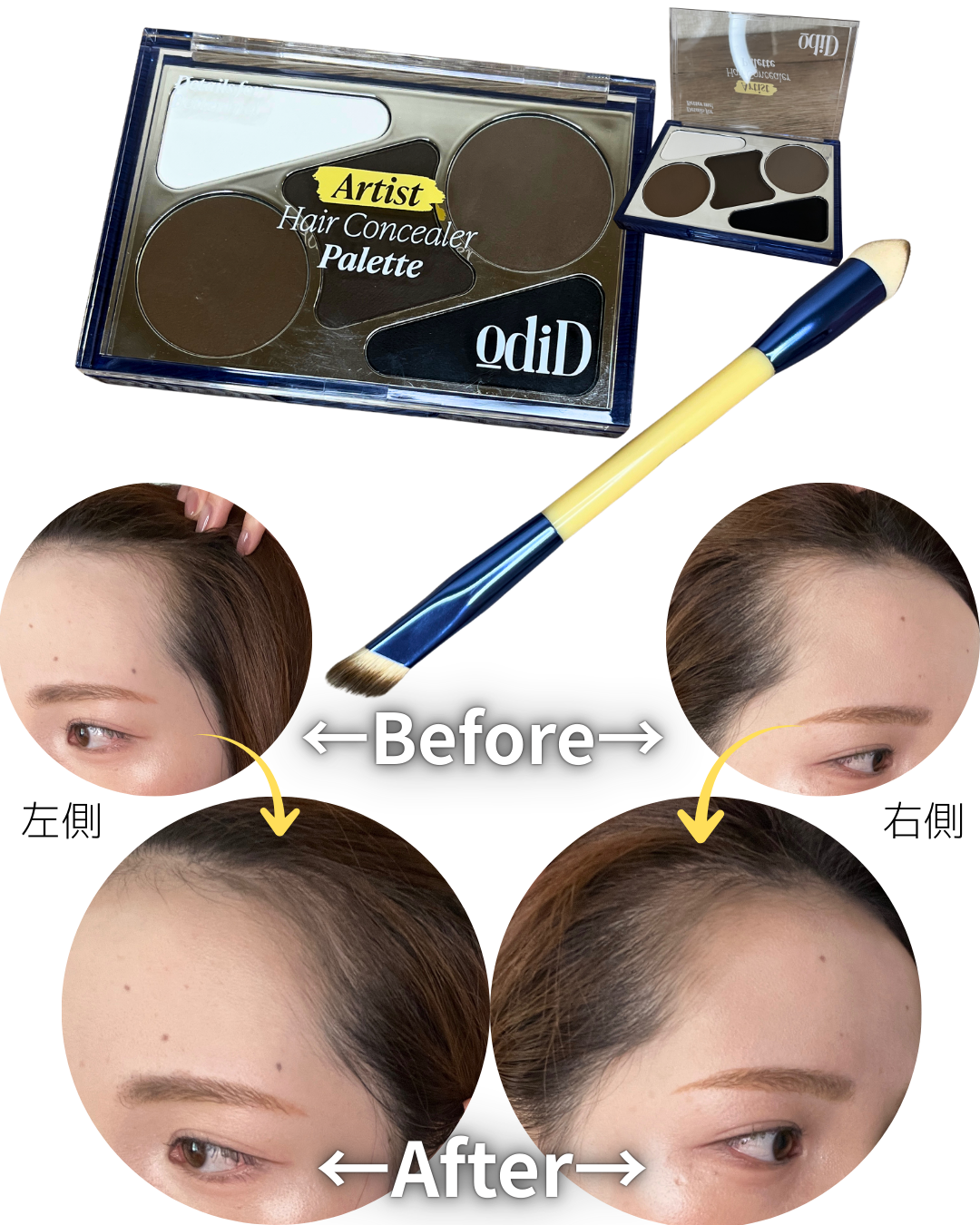 新感覚ヘアコンシーラーオーディッドアーティストラインアーティストヘアコンシーラーパレット&アーティストデュアルブラシ使ってみた♥️ヘア専用の高発色コンシーラーパレットで気になる部分を自然にカバー。オイル配合パウダーで粉飛びしにくく、頭皮にしっ...