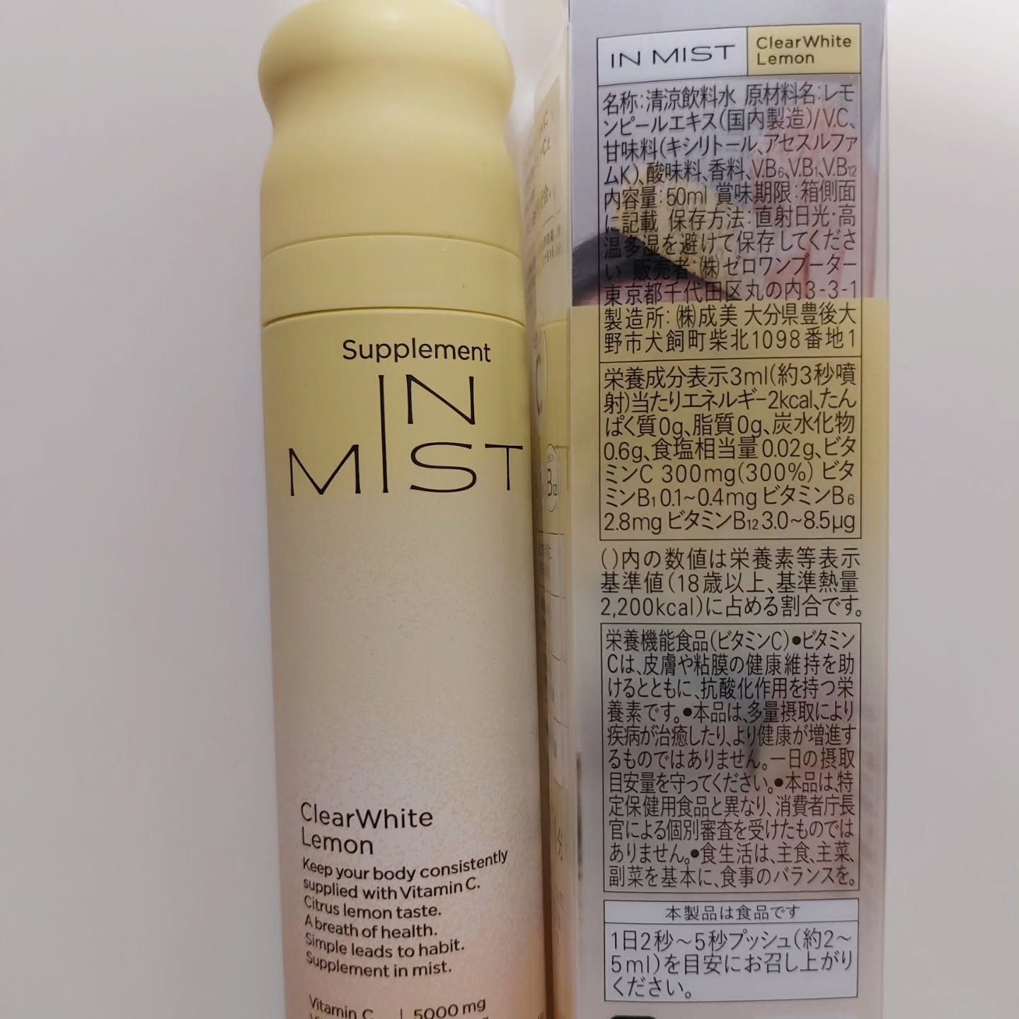 #INMISTクリアホワイトレモン\ミストタイプのサプリメント/□ワンプッシュ1mlで1日分の ビタミンC*を美味しく補給□1本で約25日間(1日2回プッシュ) ※使用回数や噴射時間によって個人差があります□独自開発の2重構造ボトル ビタミン...