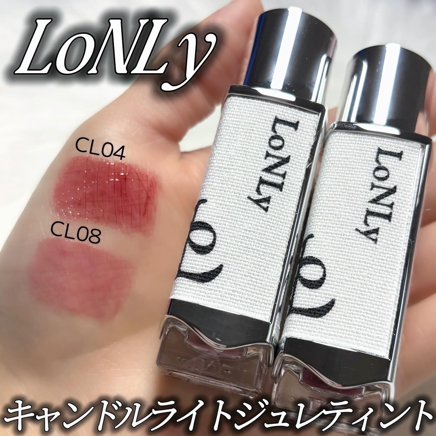 LoNLyキャンドルライトジュレティントキャンドルみたいなデザインもオシャレで、飾っても使っても幸せな気持ちになる🥰部屋のインテリアみたいに見えるリップカラー名には、イタリア音楽用語を採用されている所も魅力的🎼みずみずしくて軽い、ふっくらちゅ...