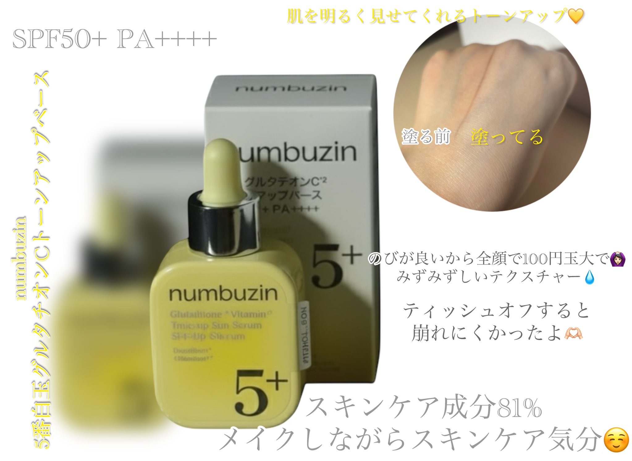 numbuzin白玉グルタチオンCトーンアップベースSPF50+PA++++「透明感重視」の私が、これはちょっと…となった下地。ひと塗りでも肌全体がパッと明るく見えるし、ムラになりにくくて、なんだか最初から肌が整っている人みたいな仕上がり。さ...