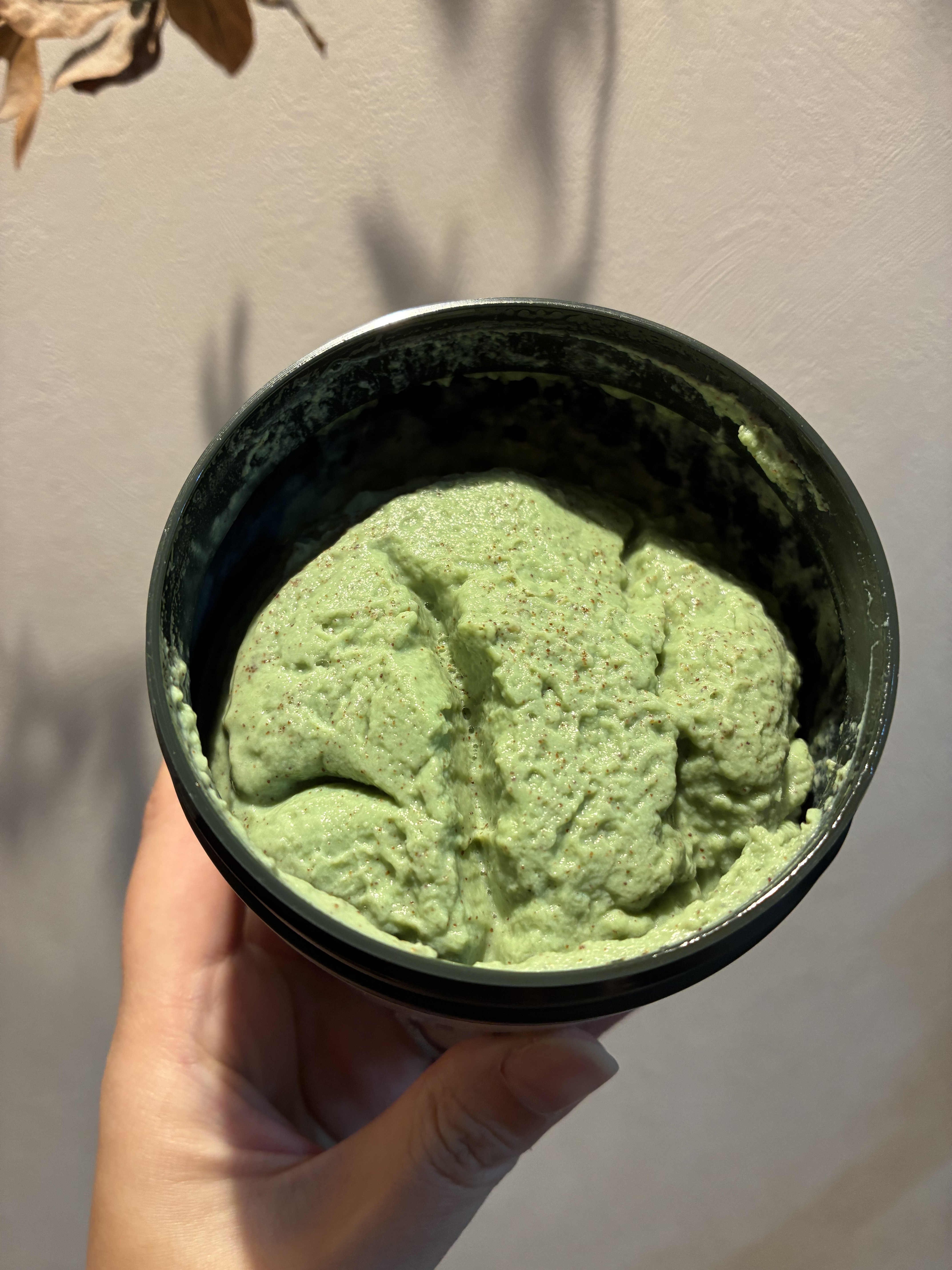 スクラブ・ボディソープ・入浴剤の3way仕様で使えるマルチケアアイテムです。ずっしりとしていてシンプルなデザインのジャータイプの商品です☺️蓋を開けると鮮やかなグリーンのスクラブが入っているのですが、少しびっくりしたのはその質感です。プルンと...