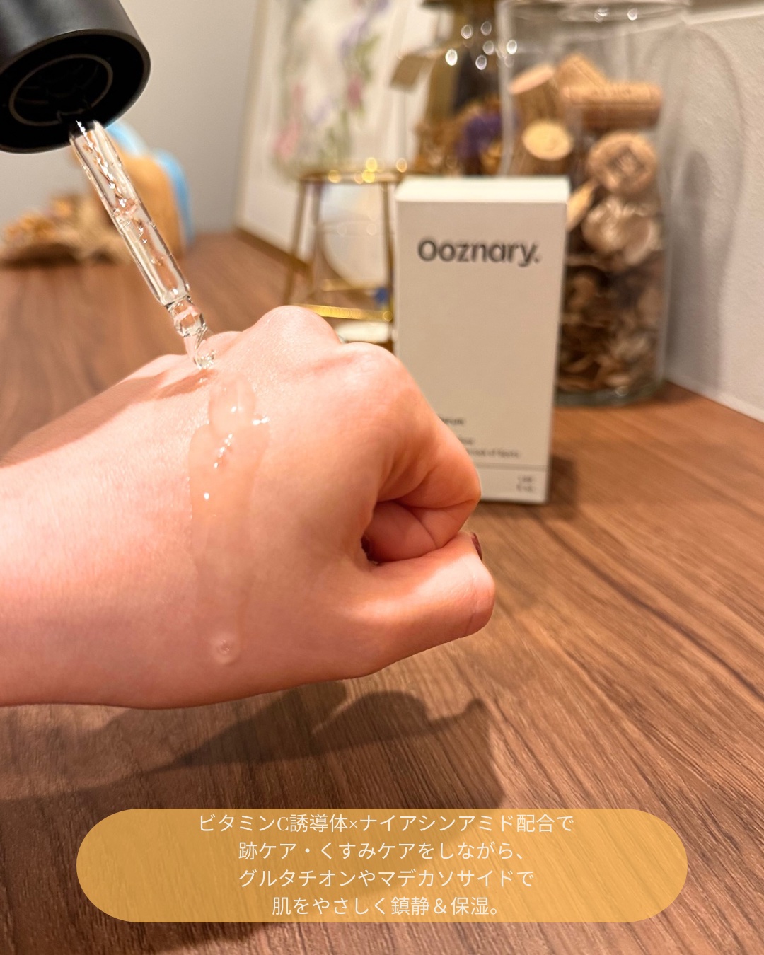 ✿オーズナリービタ3セラム🍋ビタミンC誘導体3種+ナイアシンアミド+グルタチオン配合で、透明感と肌の明るさをやさしくサポート✨伸びが良く、朝のスキンケアにも合う⭕️☀️肌に吸い込まれるように浸透して、肌がもっちりするところが気に入っています(...