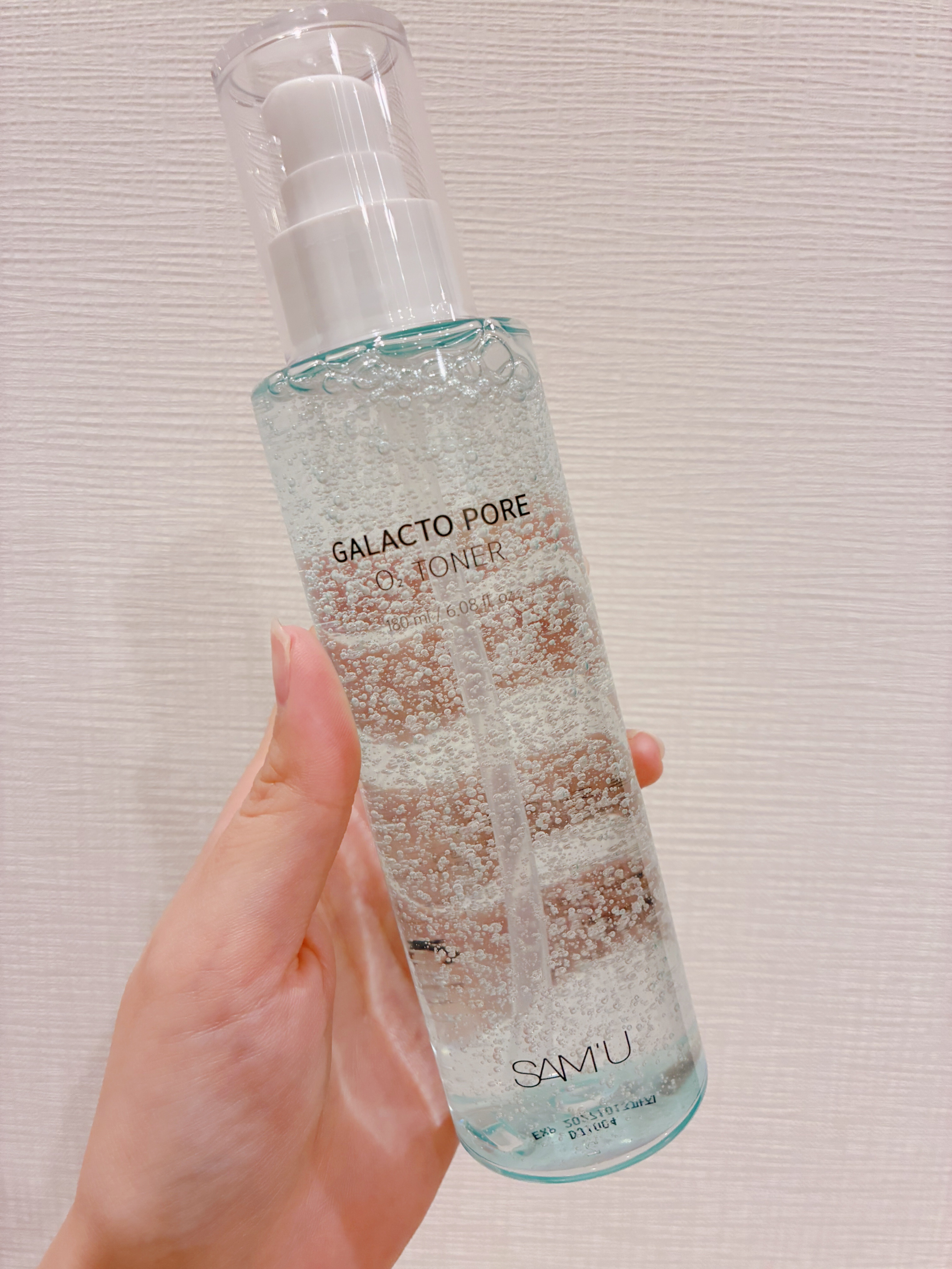 酸素バブル発生!洗顔級ケア⁉︎SAM'Uサミュガラクトポアオーツートナー振ると酸素バブルが発生して、毛穴汚れや余分な皮脂までしっかり落としたようなさっぱり感!少しとろみがありつつ、しっとりしてるのにベタつき感はなかった!これからの季節にも良さ...