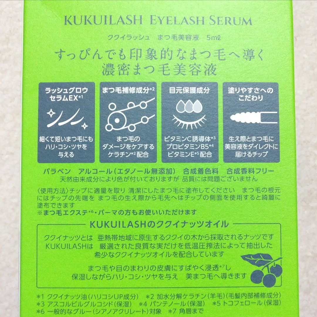 ククイラッシュさまからいただきました🖤古くから毛髪や肌に使用されている自然由来のケア成分“ククイナッツオイル*1”配合で生え際から毛先まで、ハリ・コシ・ツヤのある印象的なまつ毛に全方位ケアする濃密美容液💚ククイラッシュまつ毛美容液サラッとした...