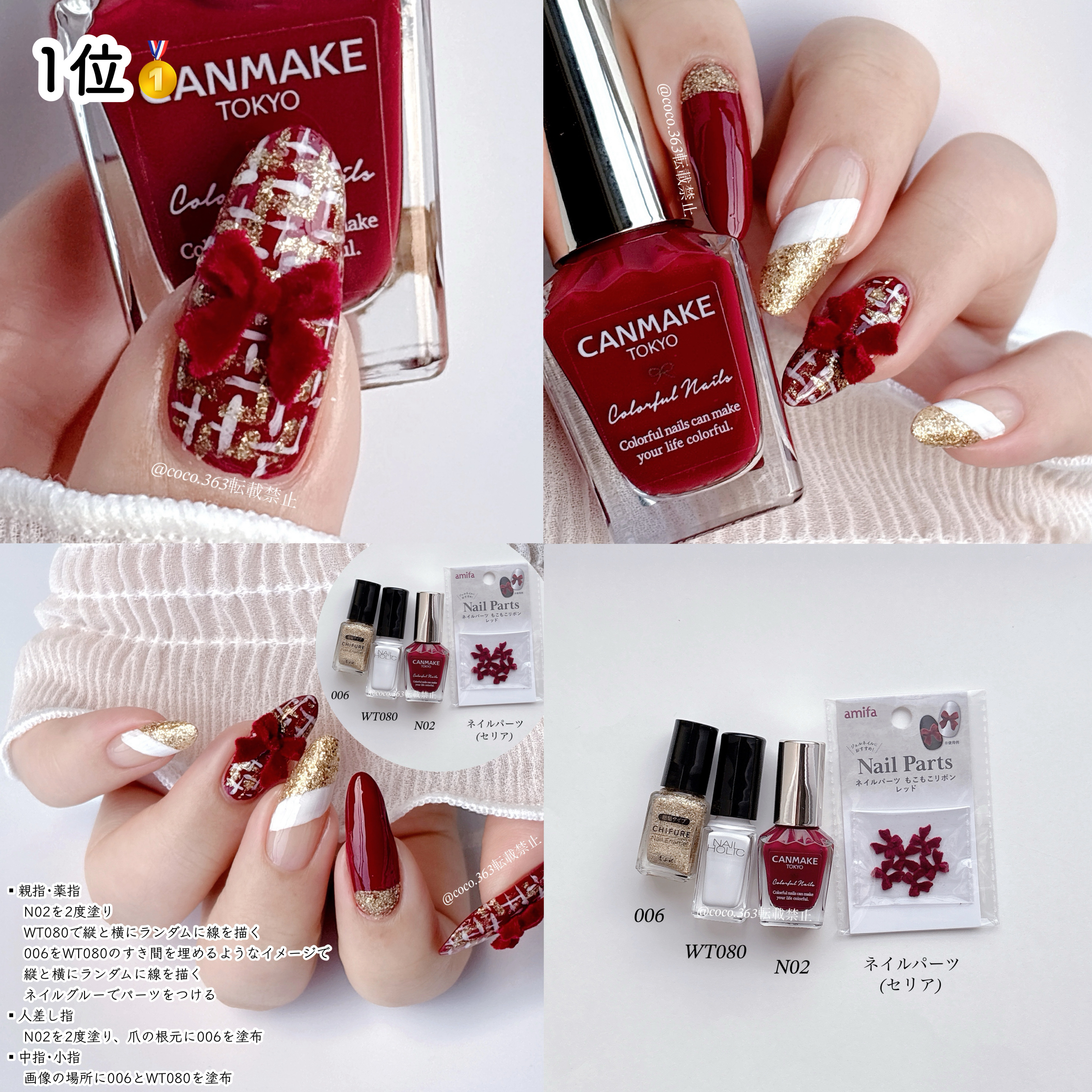 | ネイルランキング第171位 | つやつやプチプラネイル♪種類も豊富でどのカラーを使うか迷っちゃう!塗りやすいハケに発色も抜群。 | 詳細を見る | |