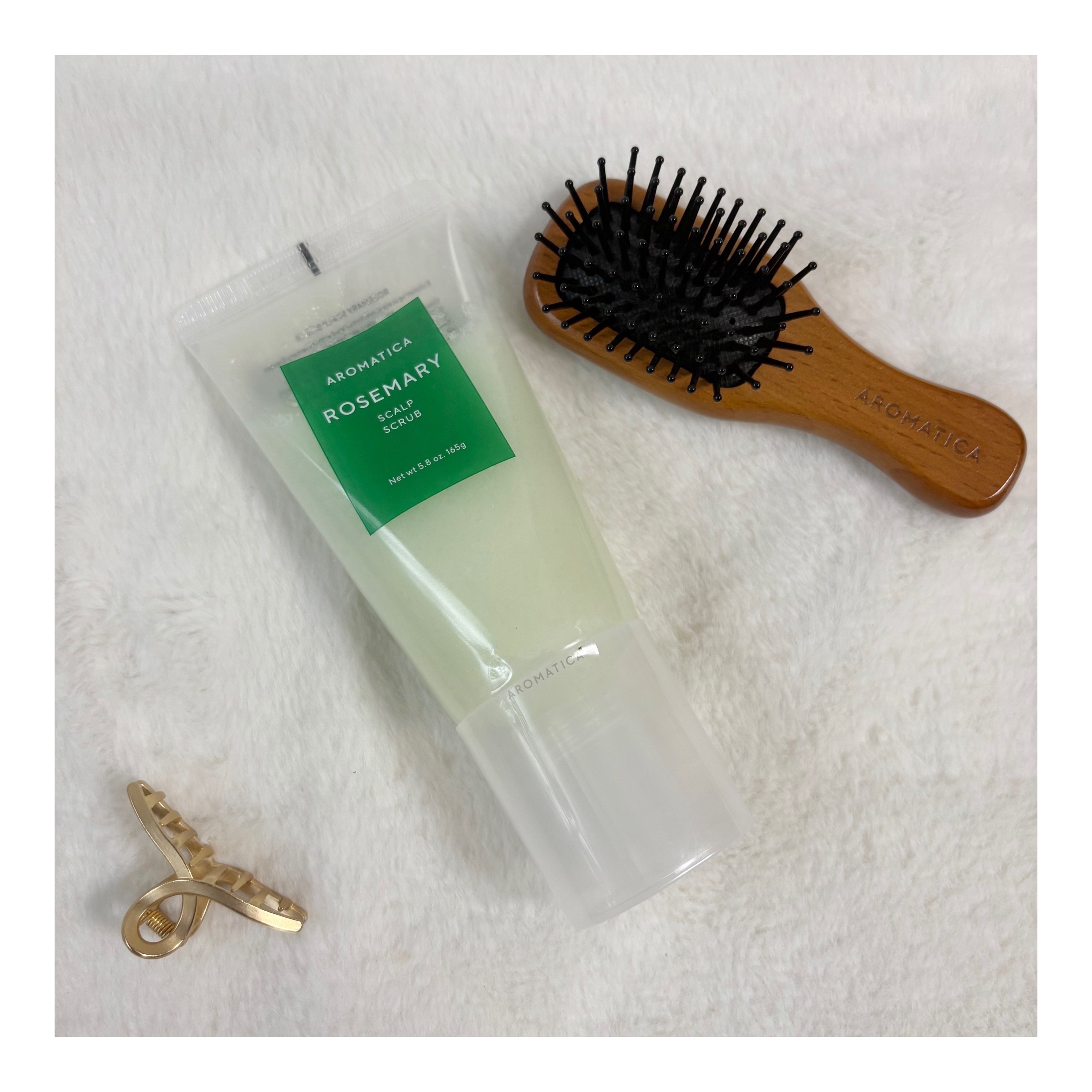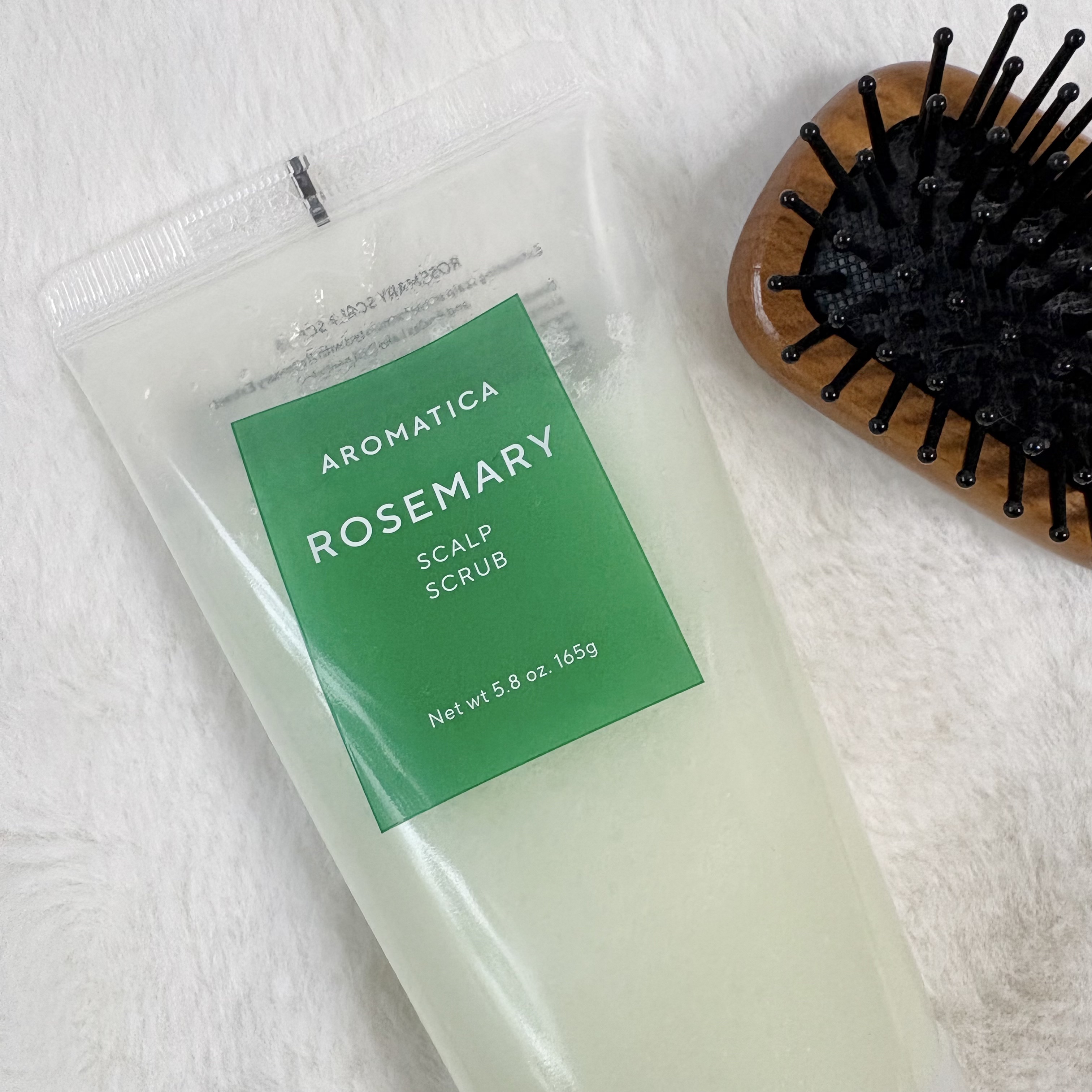 AROMATICAROSEMARYSCALPSCRUB頭皮専用のスクラブ!頭皮専用の塩スクラブ配合で、頭皮をすっきり洗い上げてくれる使用感✨スクラブが出てくる部分は先細になっているので、頭皮の分け目に直接塗布しやすいのも嬉しいポイント☺️ほん...