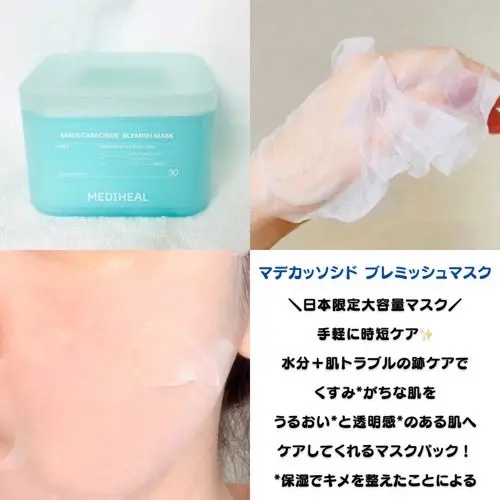 【PR】マデカッソシドの新ラインでくすみ・肌荒れケア叶うかも?【MEDIHEALマデカッソシドブレミッシュマスク】優れた清涼感で気持ちがよく、薄めのシートにひたひたに含んで液だれなく密着していますさっぱりと保湿でき、肌荒れやゆらぎの時にもぴっ...