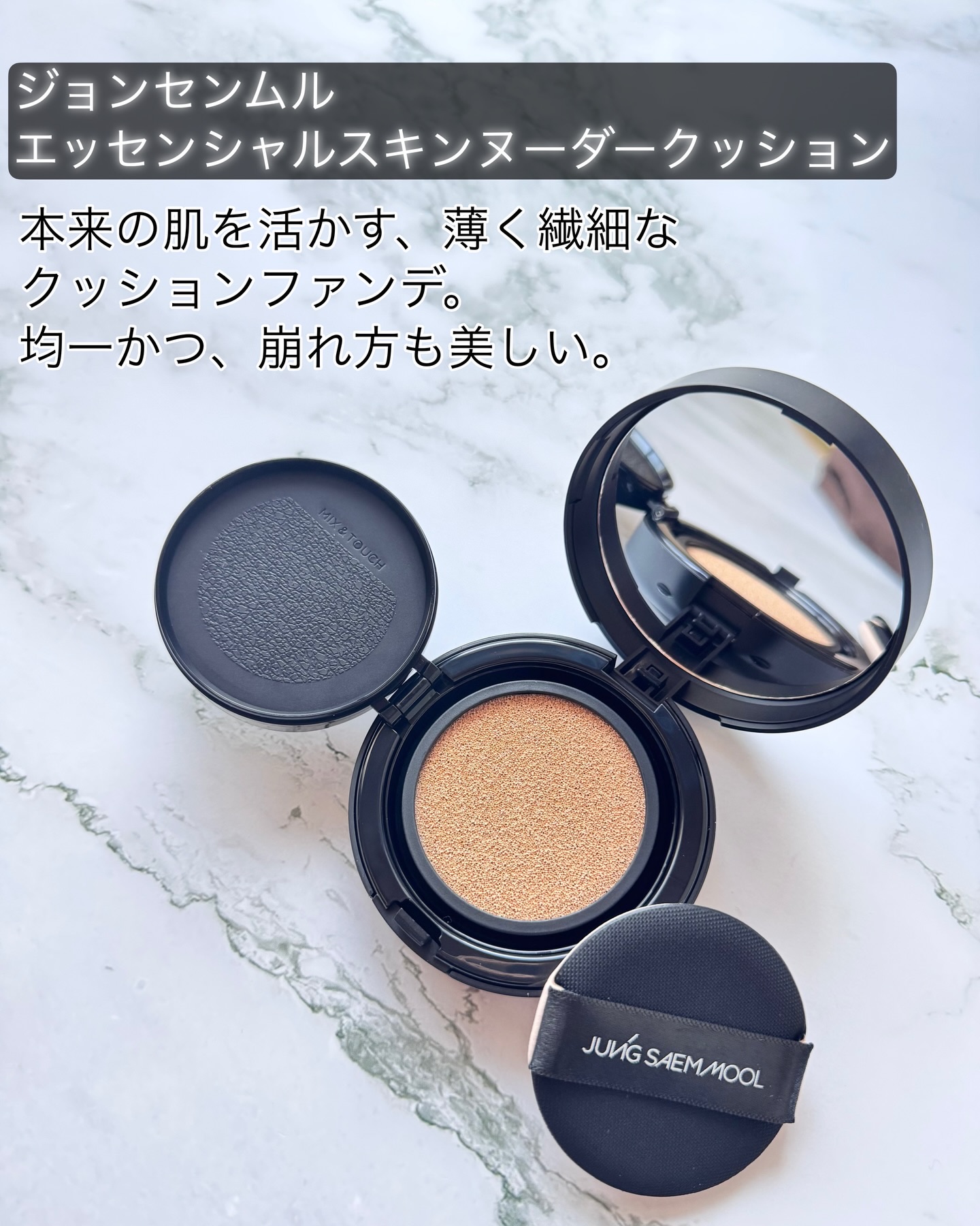 jungsaemmoolエッセンシャルスキンヌーダークッション韓国オリーブヤング(23.07〜24.06)クッション部門1位になったJUNGSAEMMOOLのクッションファンデ✨️なめらかなテクスチャーでナチュラルな仕上がりで、セミマットな使...
