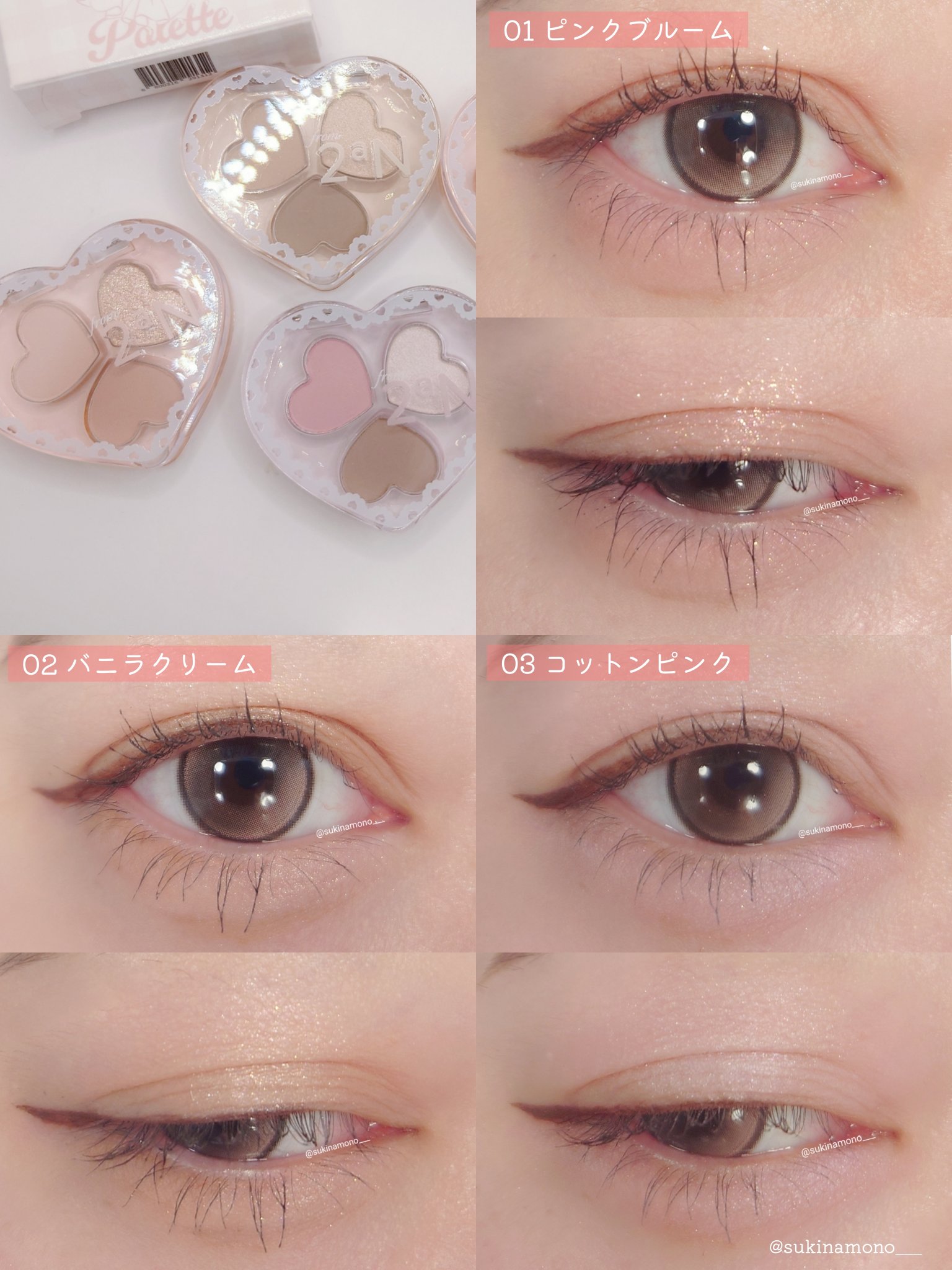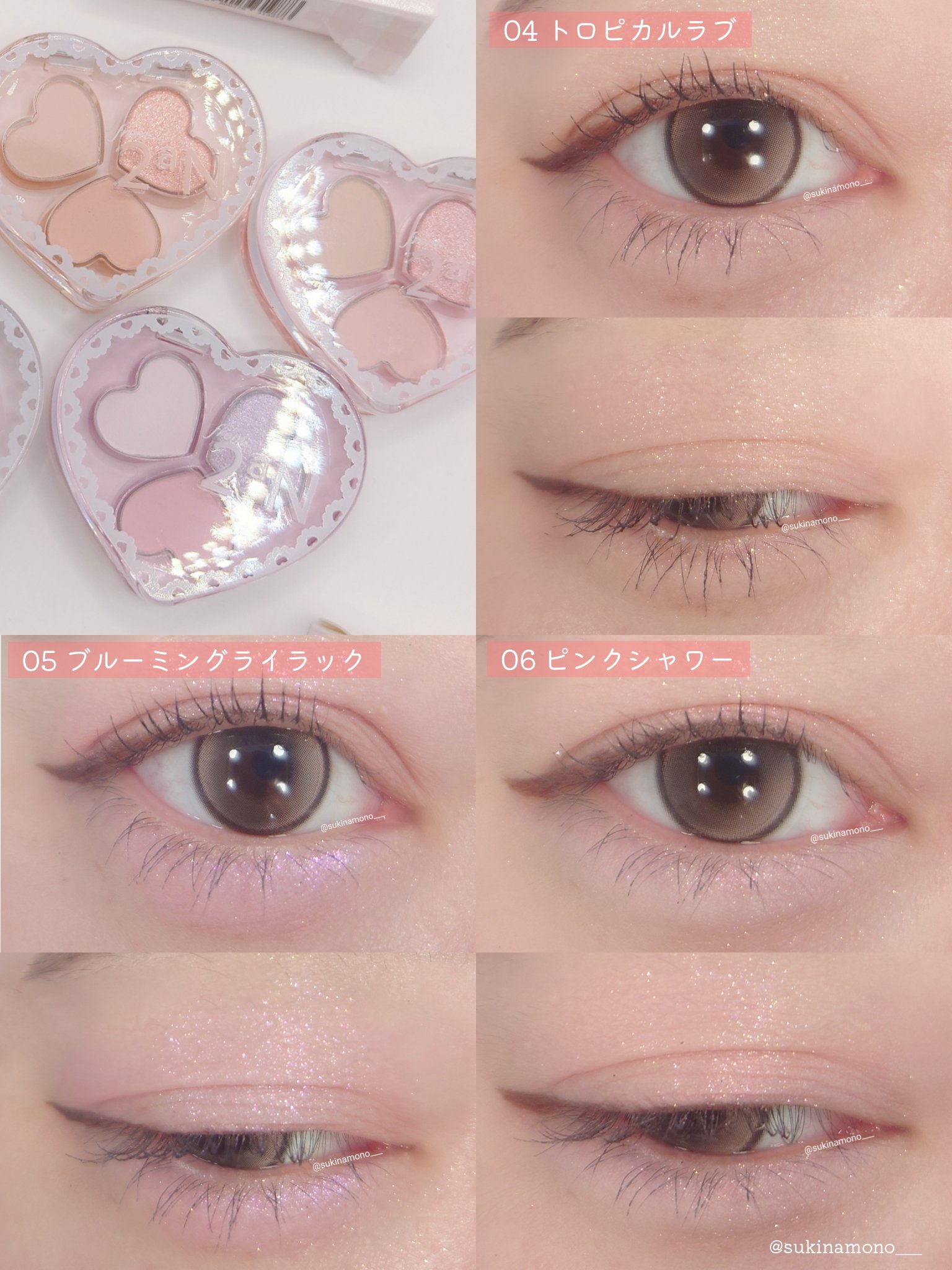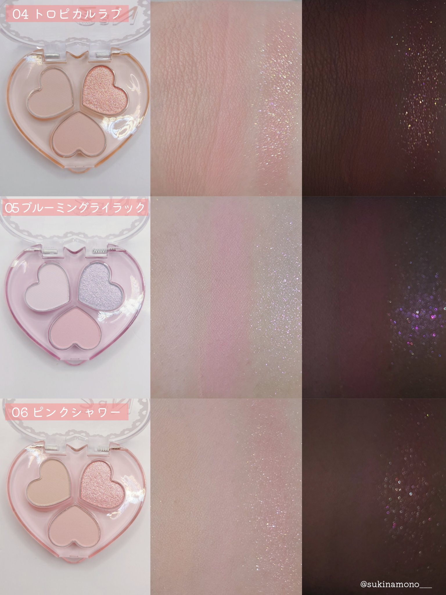 \セブン-イレブン限定♡ミニコスメ/from2aNラブクローバーパレット01ピンクブルーム02バニラクリーム03コットンピンク04トロピカルラブ05ブルーミングライラック06ピンクシャワー持ち運びに便利なサイズ感でハート型が可愛い3色アイシャ...