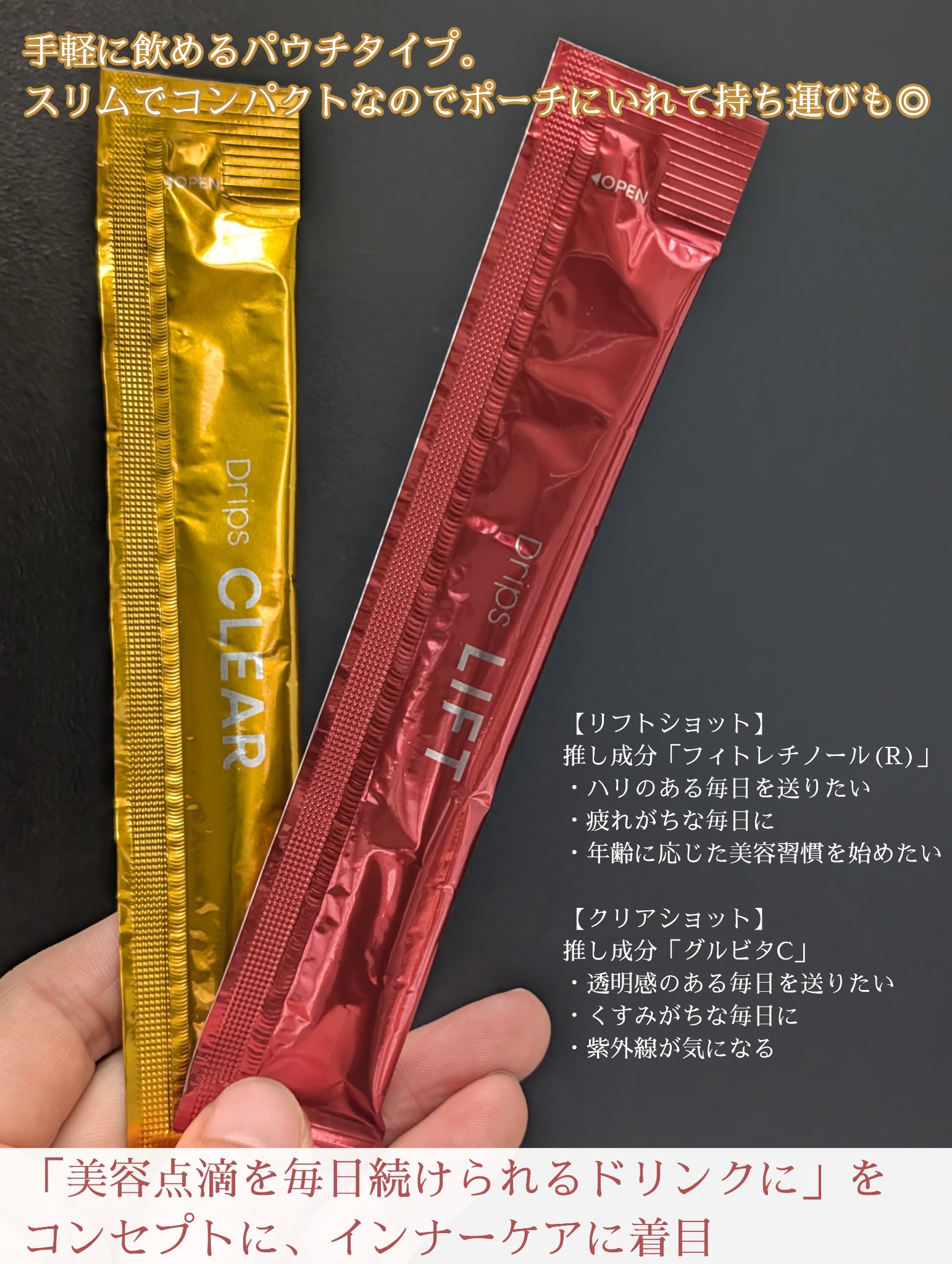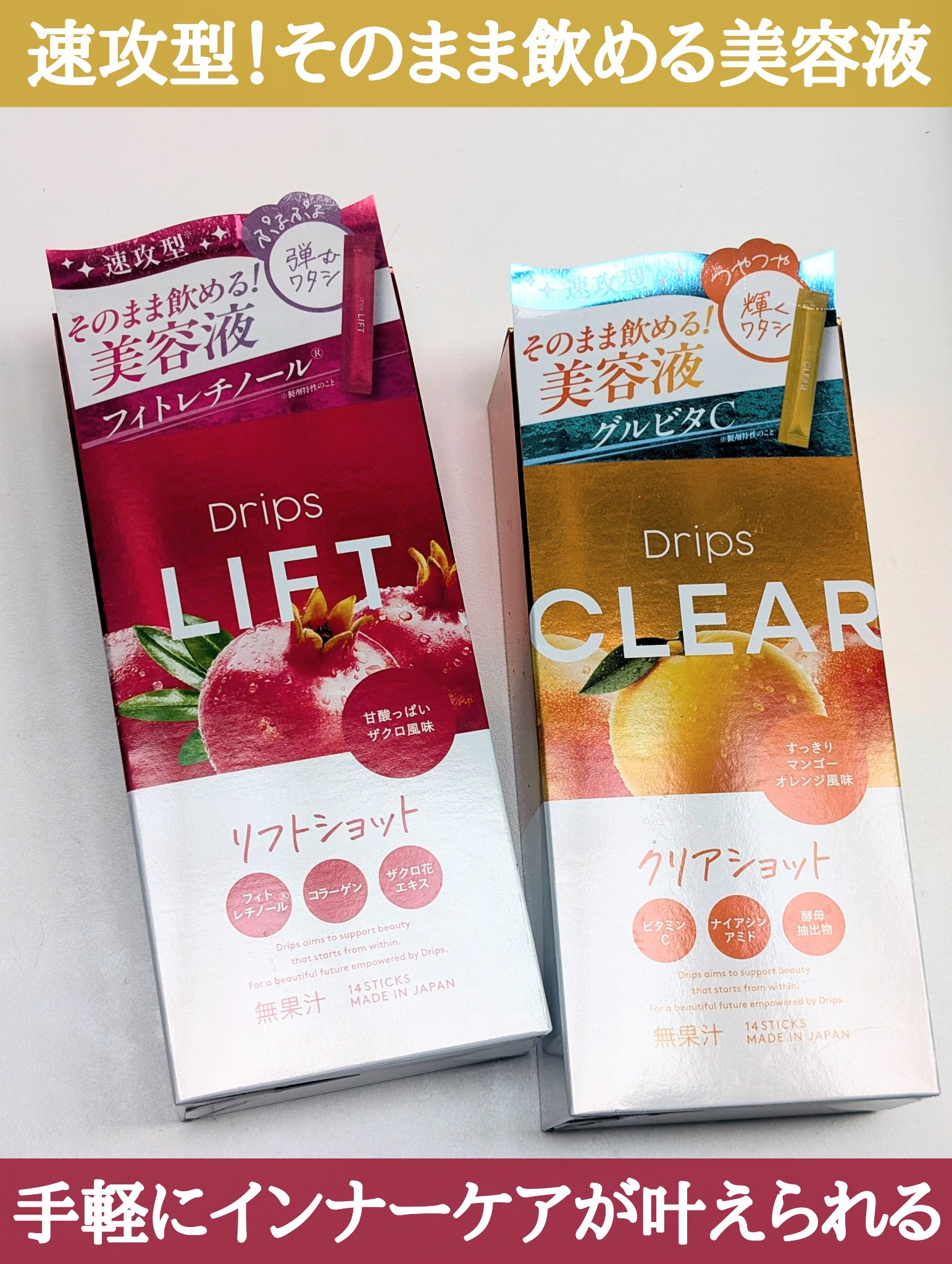 .ドリップスリフトショットザクロ風味クリアショットマンゴーオレンジ風味そのまま飲める美容液「Drips(ドリップス)」水なしで美味しく飲めるのは魅力的です🥰「リフトショット」は推し成分フィトレチノール®︎配合❤️1箱に14スティック入っ...