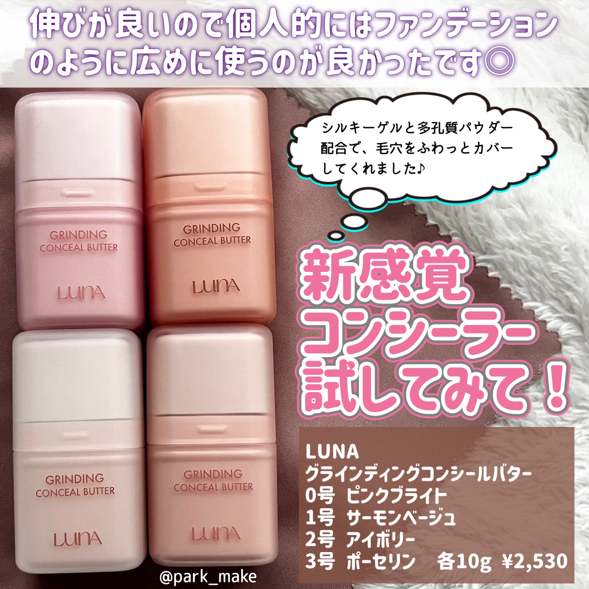 LUNAグラインディングコンシールバターを使ってみました☺💛必要な分だけクルクル削って使えるから、厚塗りにならず自然にカバーできる!💛バターみたいになめらかにスルッと伸びて、肌にピタッと密着✨💛シルキーゲル×多孔質パウダーで毛穴もふんわりカバ...