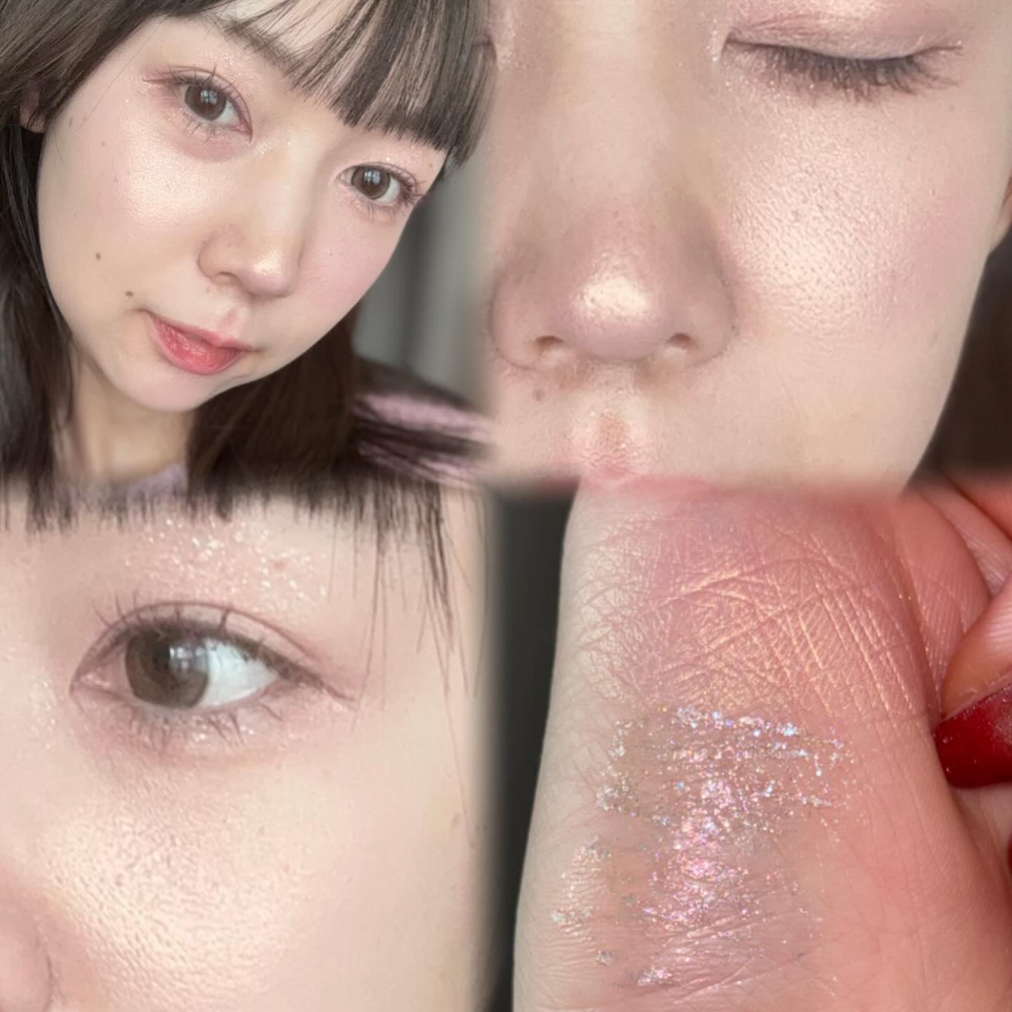 買って良かった😭透明感ましまし💜 ファンデの下に仕込んでおくと保湿感もツヤもラメも欲張れる! アイメイクのベースにもできた◎ マスクつけた時に鼻の頭のハイライトだけヨレる問題解決しそう!