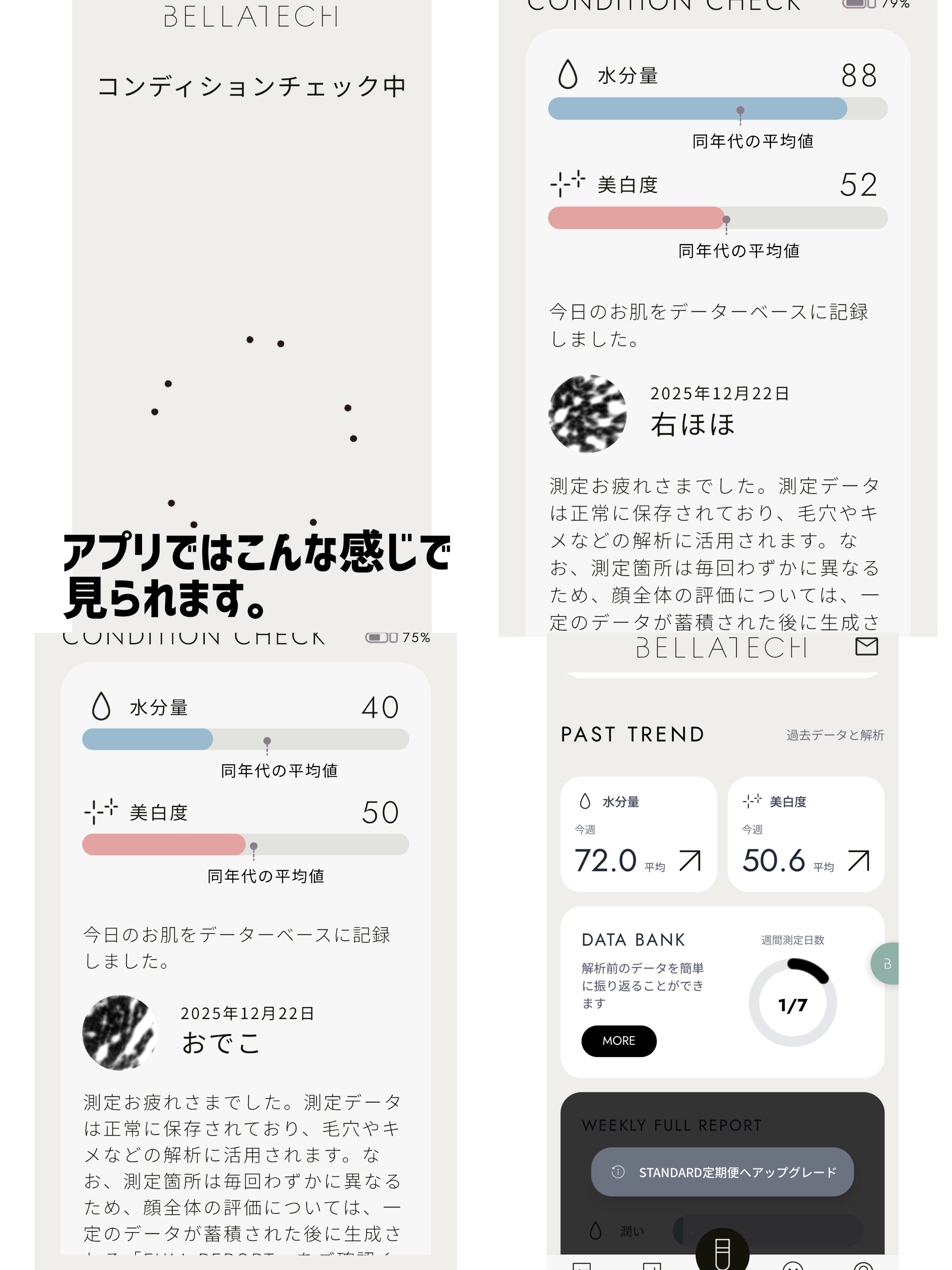 「BELLATECHSKINCAREAISKINSCANNER」を試してみました😊こちらは、AI肌測定で自分に合ったスキンケアを選ぶ手助けをしてくれるというアイテムになります✨✼••┈┈••✼••┈┈••✼••┈┈••✼••┈┈••✼まずは専...