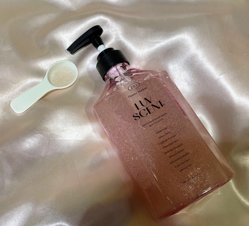 LUVSCENT【ラブセント】パフュームスクラブボディウォッシュフラワーマーケット✨スクラブ&ボディウォッシュの2WAY香水スクラブ!ついつい手に取りたくなるようなキラキラしたボディウォッシュで、手軽に全身をスクラブケアしたい方にオススメ☺️...