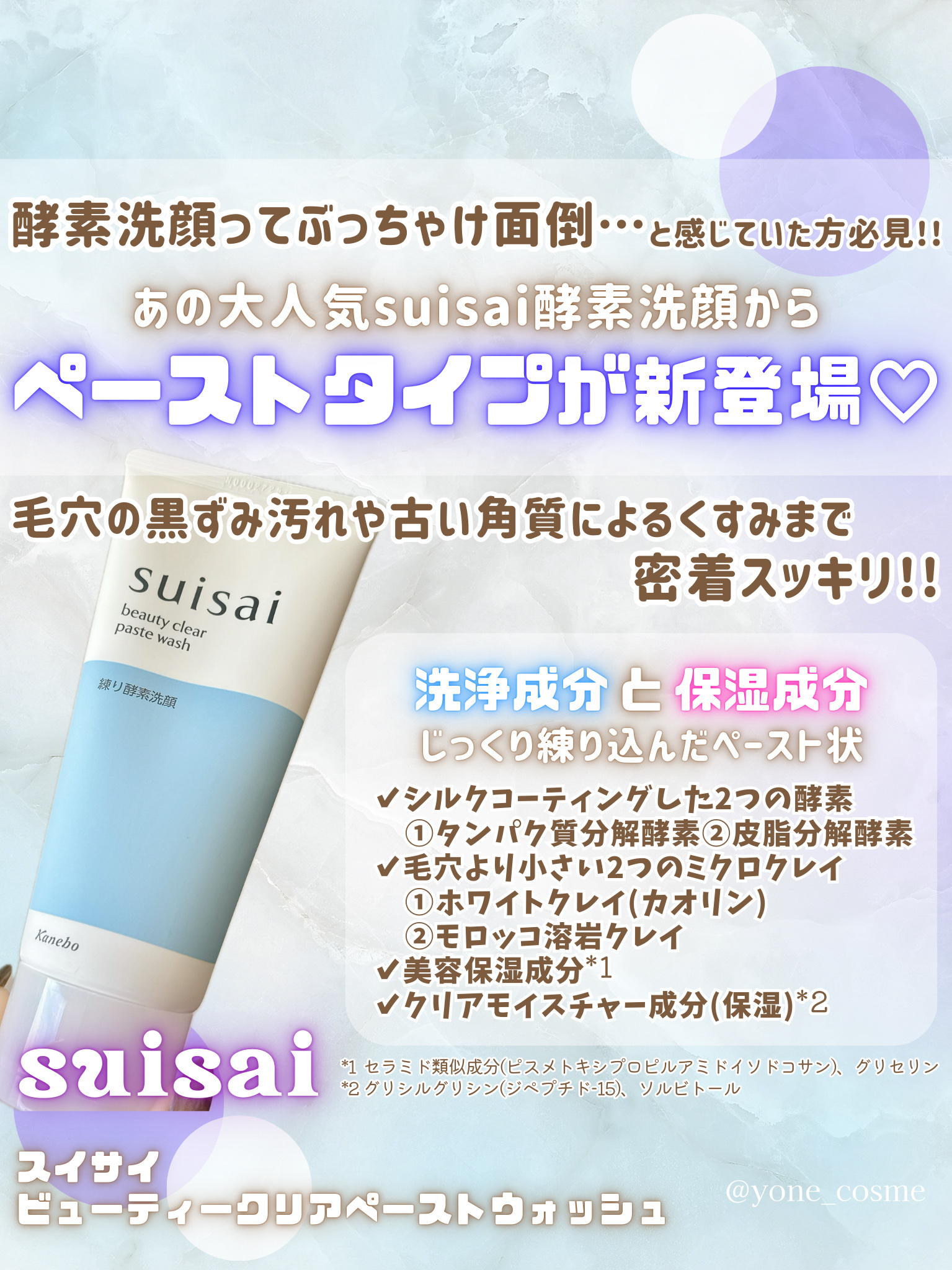 ニキビ肌・毛穴肌のリアルなコスメレビューを発信しているNARIです🌼今回は、LIPSさんのキャンペーンに当選して商品提供いただいた洗顔のご紹介です!#suisai#スイサイビューティークリアペーストウォッシュスイサイと言えば、酵素洗顔のパウダ...