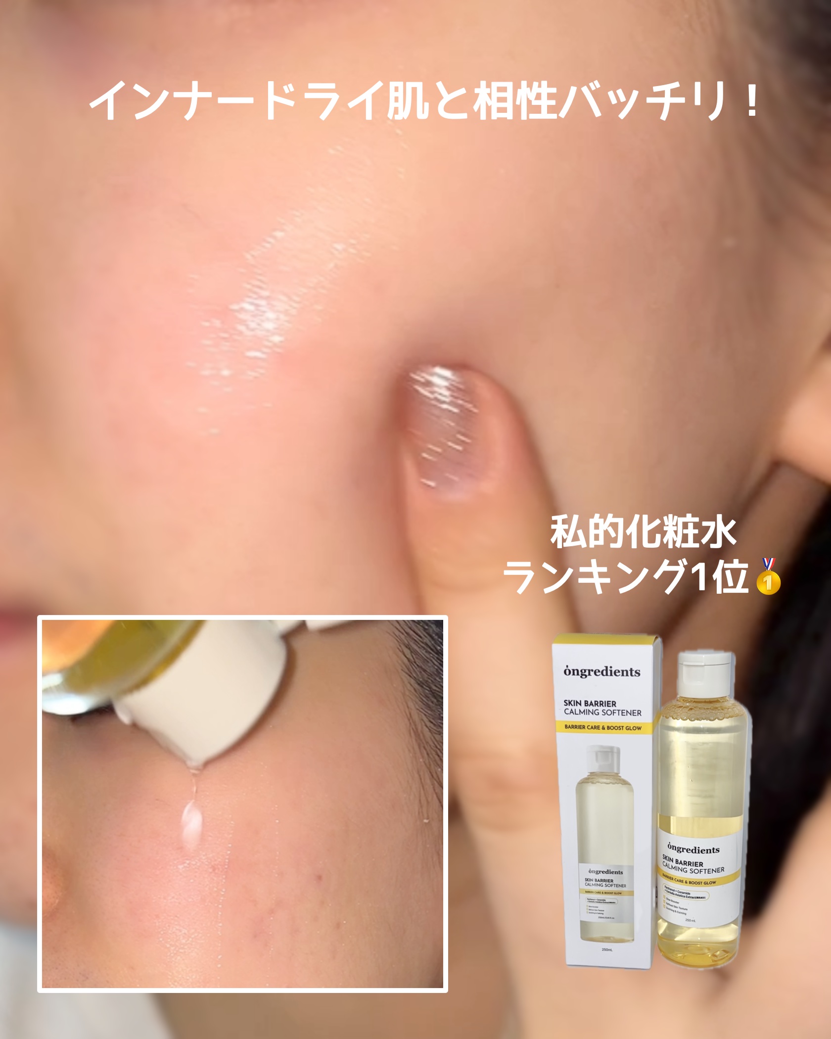 保湿の土台は水分補給!オングリディエンツスキンバリアカーミングソフナー乾燥が気になる時期のスキンケアって、こってりクリームなどの油分も大事だけど、忘れちゃいけないのが肌の水分ケアオングリディエンツのソフナーは、サラッとしたテクスチャーで、肌な...