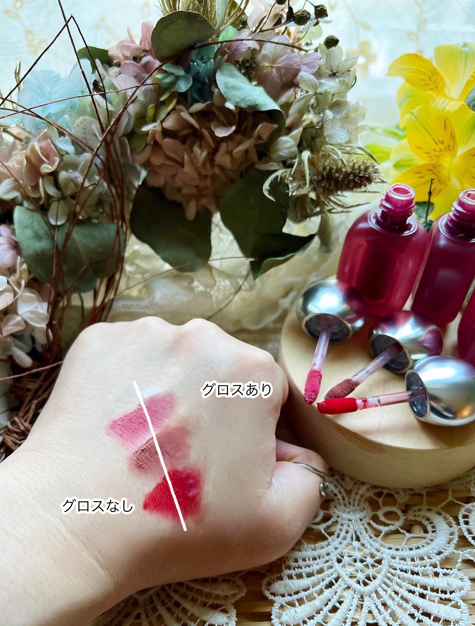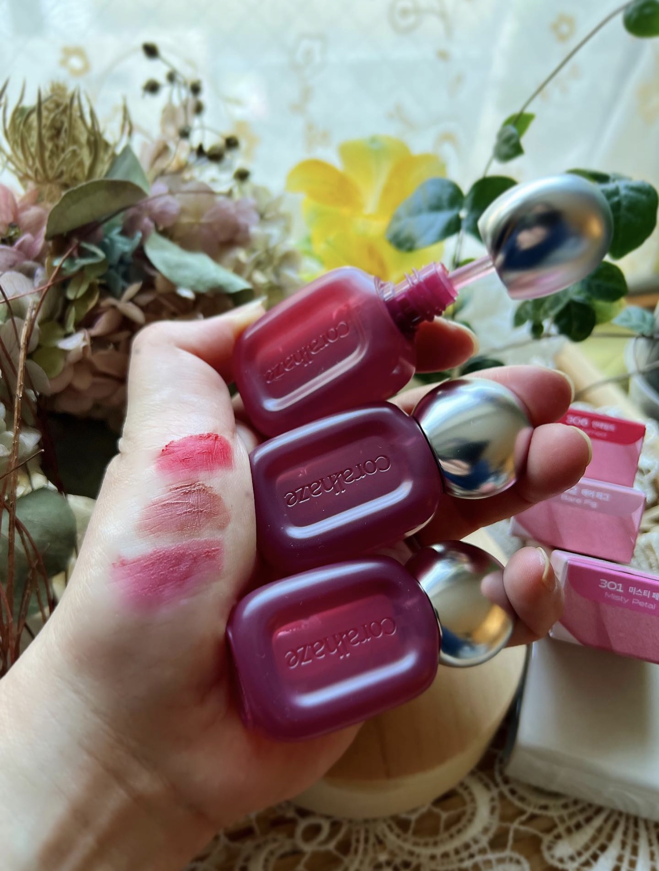 | 中身はゼリーみたいなテクスチャーで ぷるんとしたツヤタイプのティント。 | 詳細を見る | ||