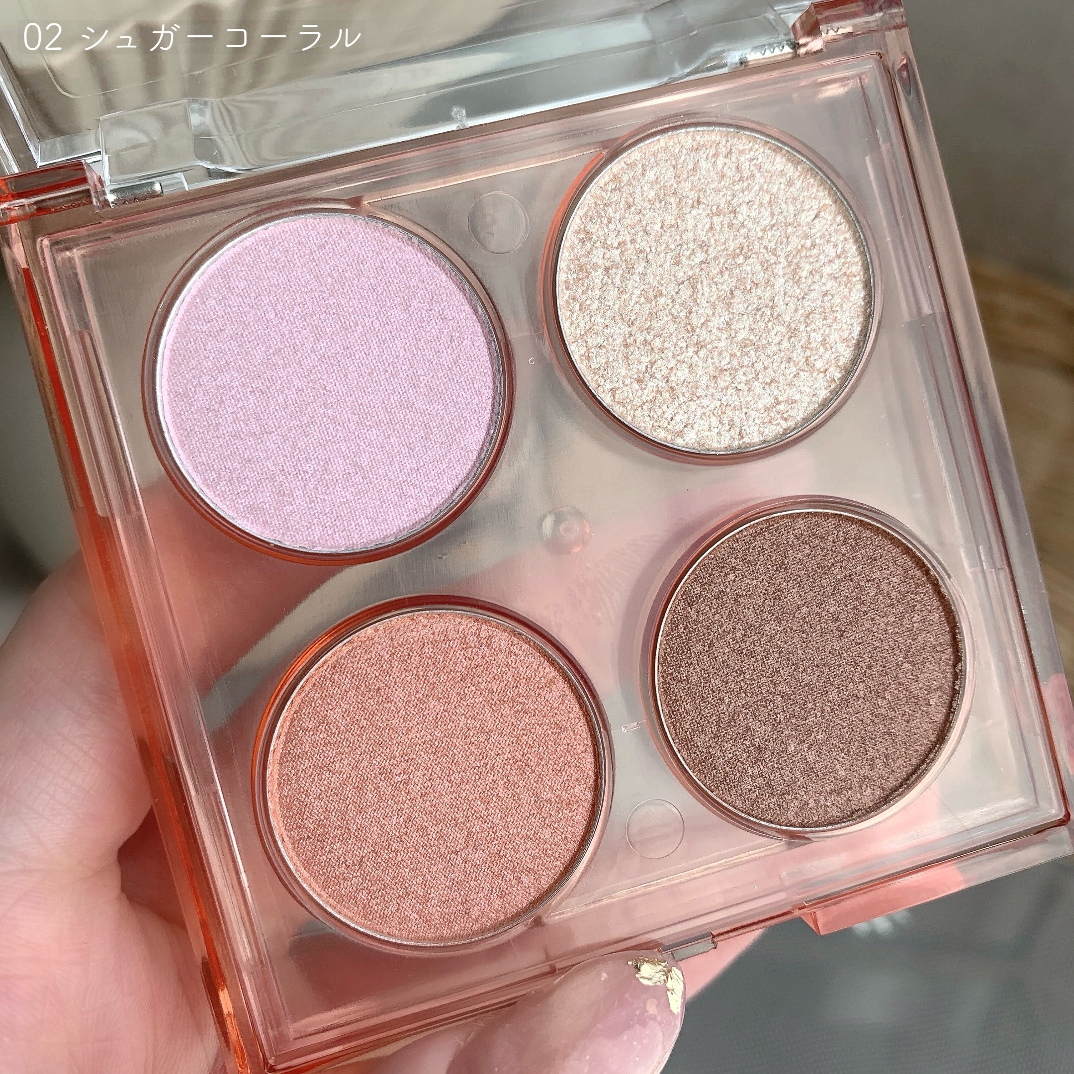 - <01 エンジェリックモーブ> 合成フルオロフロゴパイト、タルク、酸化チタン、フェニルトリメチコン、ホウケイ酸(Ca/Al)、リンゴ酸ジイソステアリル、シリカ、ホウケイ酸(Ca/チタン)、マイカ、ステアリン酸亜鉛、水添ポリイソブテン、ダイマージリノール酸ダイマージリノレイルビス(ベヘニル/イソステアリル/フィトステリル)、ジメチコン、酸化鉄、グンジョウ、1,2-ヘキサンジオール、イソノナン酸イソノニル、ジ安息香酸PG、トリエトキシカプリリルシラン、エチルヘキシルグリセリン、ジメチコンクロスポリマー、酸化スズ、水酸化Al、ミリスチン酸Al、赤226 <02 シュガーコーラル> タルク、合成フルオロフロゴパイト、酸化チタン、ホウケイ酸(Ca/Al)、フェニルトリメチコン、ホウケイ酸(Ca/チタン)、リンゴ酸ジイソステアリル、マイカ、シリカ、ステアリン酸亜鉛、水添ポリイソブテン、ダイマージリノール酸ダイマージリノレイルビス(ベヘニル/イソステアリル/フィトステリル)、ジメチコン、酸化鉄、1,2-ヘキサンジオール、イソノナン酸イソノニル、ジ安息香酸PG、トリエトキシカプリリルシラン、エチルヘキシルグリセリン、ジメチコンクロスポリマー、酸化スズ、水酸化Al、ミリスチン酸Al、赤226、グンジョウ