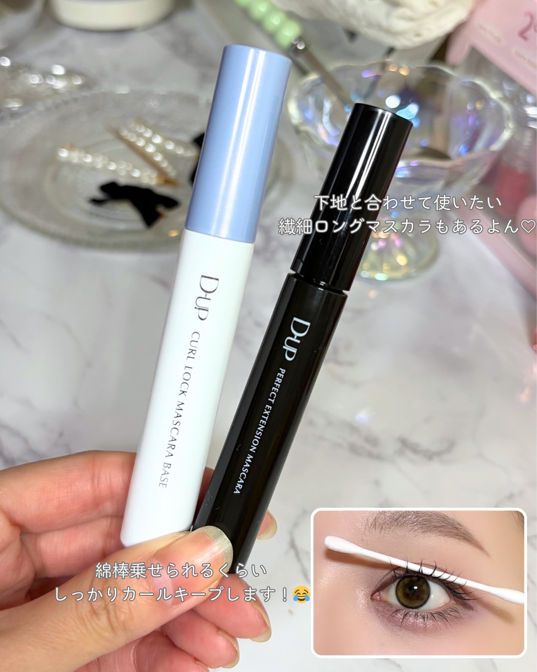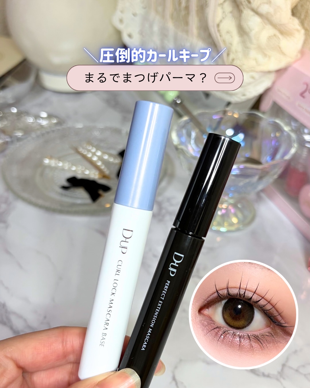 上向きまつげ、夜までキープ🫶 \流行りの「束感まつげ」も簡単に/D-UP▷カールロックマスカラベース[マスカラ下地]▷パーフェクトエクステンションマスカラブラック 塗った瞬間、まつげのカールロック!まつパ級カールキープを誇る、マスカラベ...