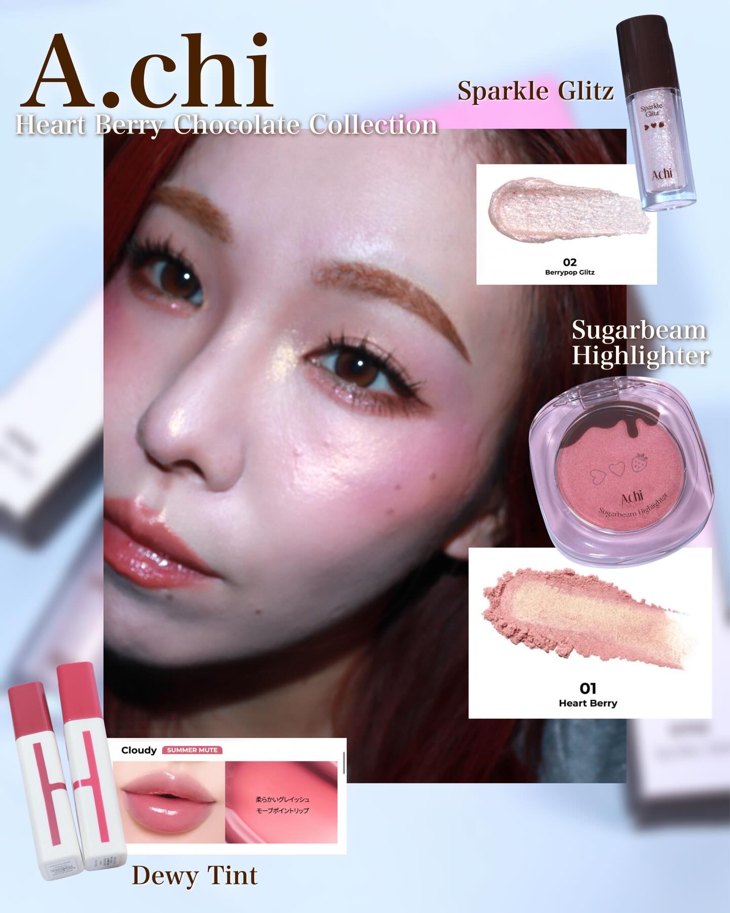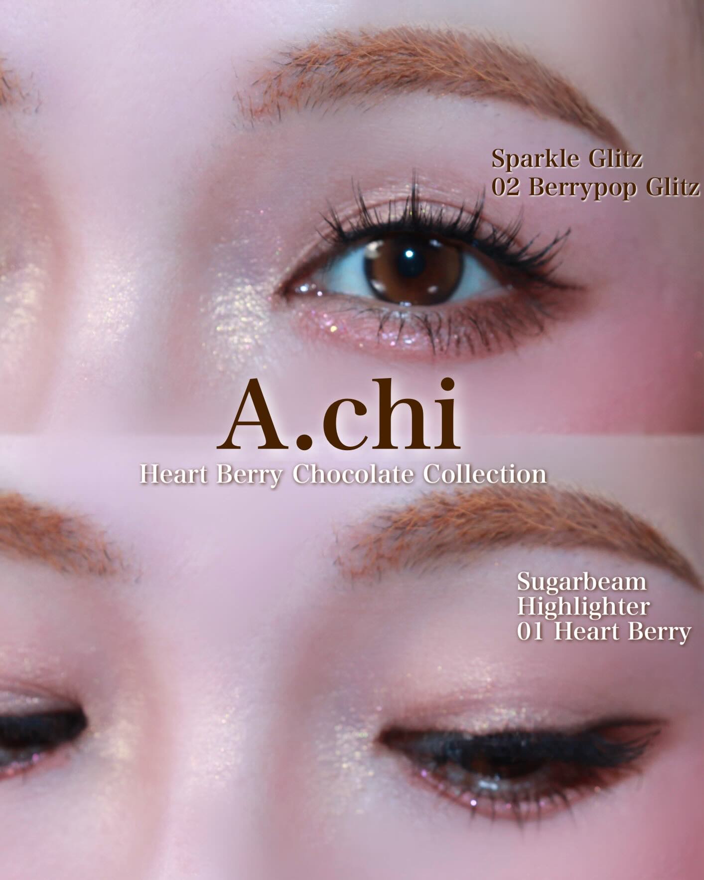 キラキラ映えコスメ✨❄️A.chiハートベリーチョコレートコレクション🤎-SugarBeamHighliter01ハートベリー-SparkleGlitz01スノーグリッツ02ベリーポップグリッツピンクゴールドビームがかわいいハイライト✨レイヤ...
