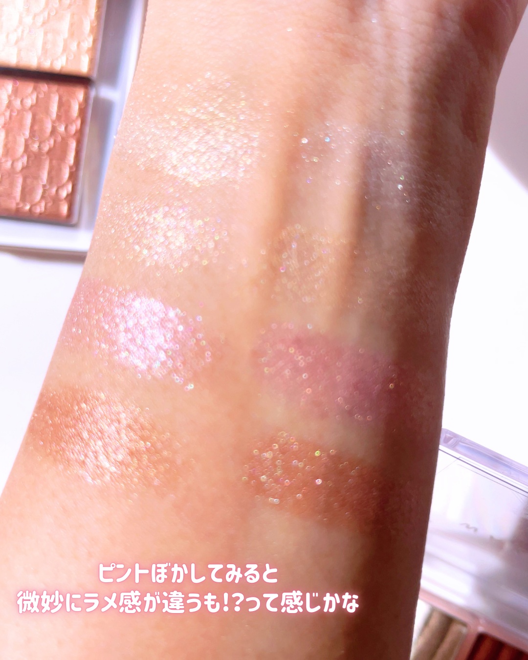 パケからもう可愛い…!ベストセラーの4色ハイライトパレットが進化。思いのままに纏う、未体験の輝き。多分このカラーブルベ向きなんだろうけどイエベ春でもかわいい、いける!粉質がしっとりしてて肌馴染み抜群上品に光ってくれる✨①キラキラ度たかめ。少し...