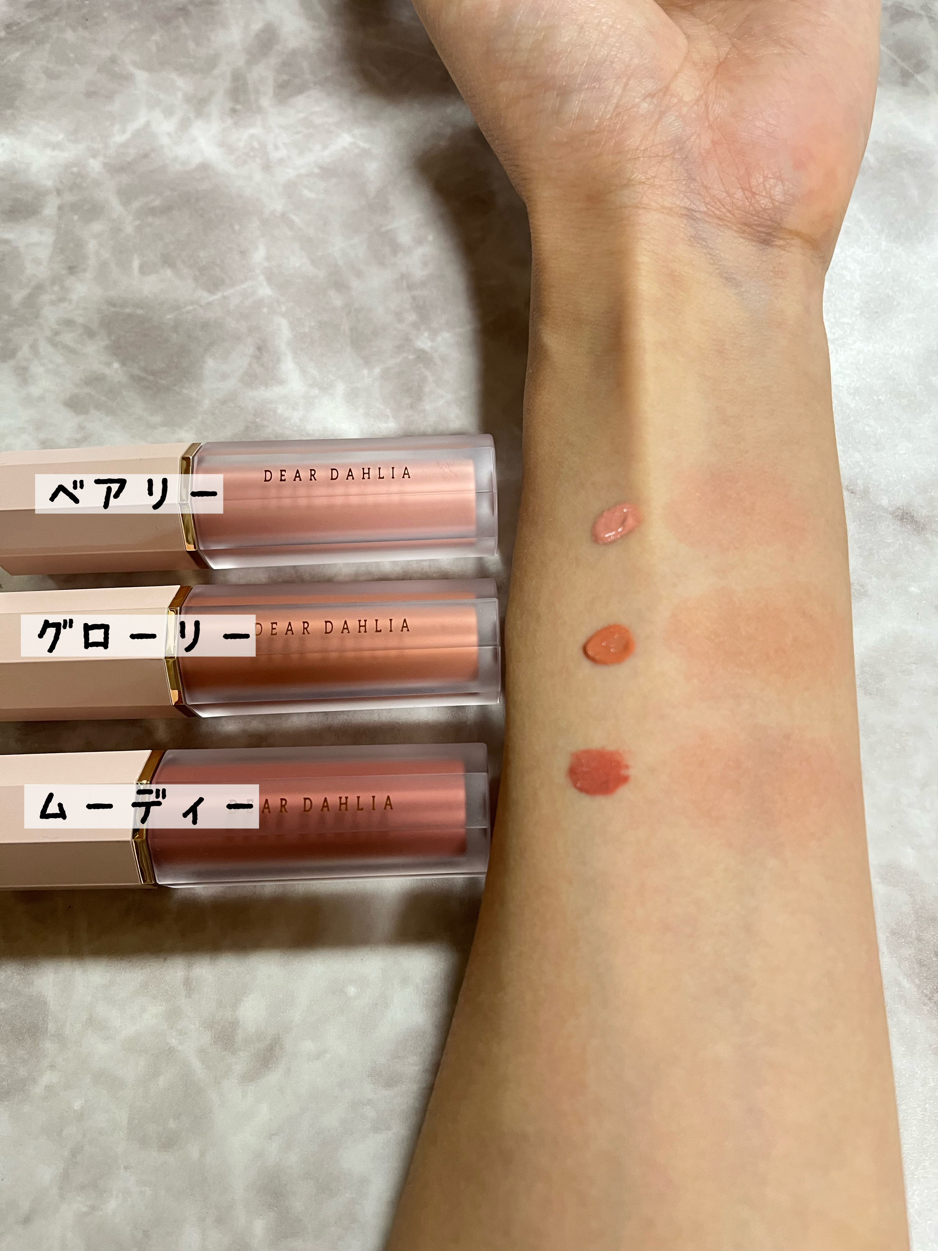 ふんわりジュワッと発色のほてりチーク♡☺️DEARDAHLIAのペタルドロップリキッドブラッシャーベアリーをスウォッチ✨️🌸DEARDAHLIAペタルドロップリキッドブラッシャーベアリーピンクベージュなニュートラルカラーが可愛い😍🥹お肌に自然...