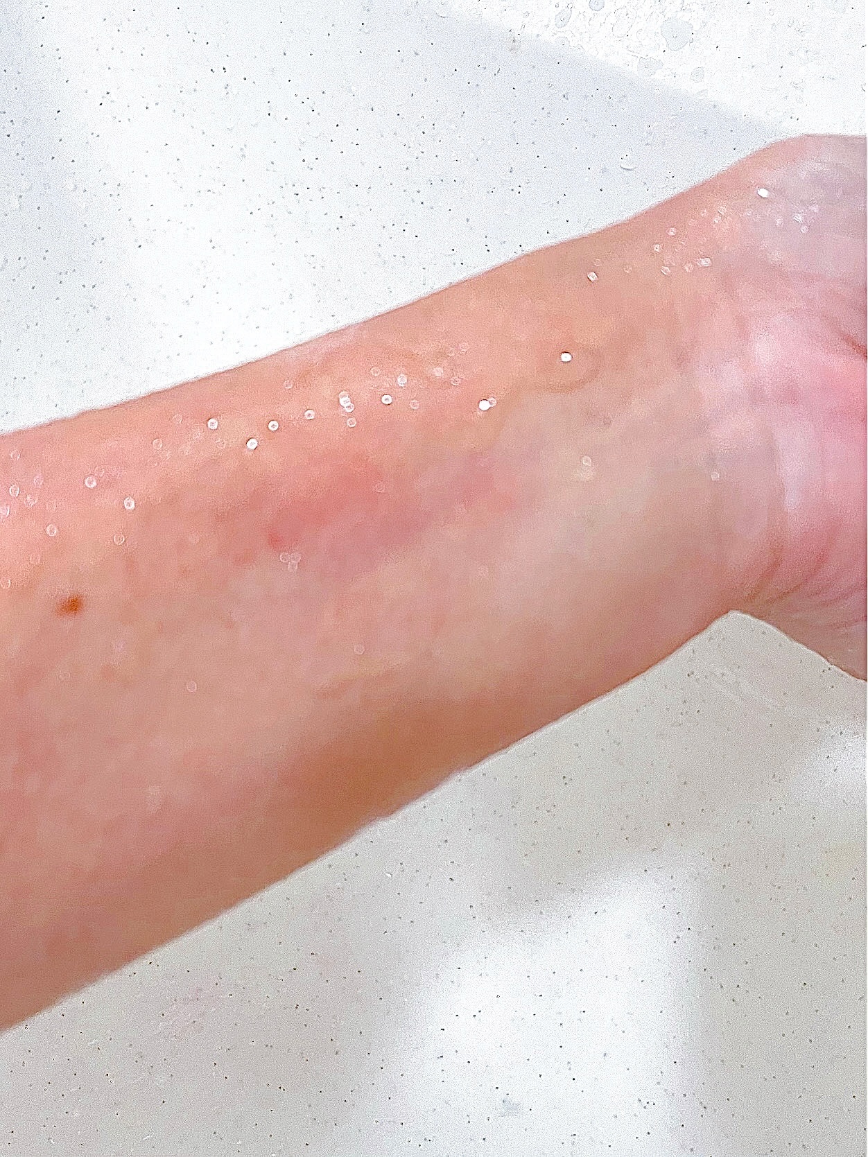 サラっとした軽い塗り心地✨ 手に取り出した時は、硬めのクリームのような感じなのですが伸ばしてみるとサラっとした テクスチャになります。 塗ったあとの肌はベタつきなどなく 多少のみずみずしさがあります。 塗り心地は良い❣️