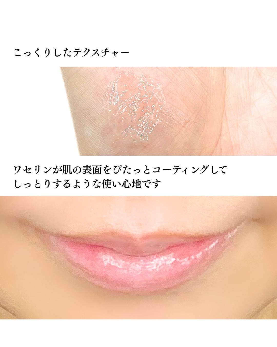 - 子供から大人まで安心&手軽に使える「ベビーワセリンリップ」 ベビーワセリンは、酸処理を伴わない精製方法を採用しており無香料、無着色、パラベンフリーの商品です。従来のワセリンと比べ、無添加で不純物が少なく、やわらかくて伸びがよいため赤ちゃんから大人まで安心してご利用頂けます。本商品は、チューブタイプで先端が斜めにカットされているため、リップとして便利なタイプです。