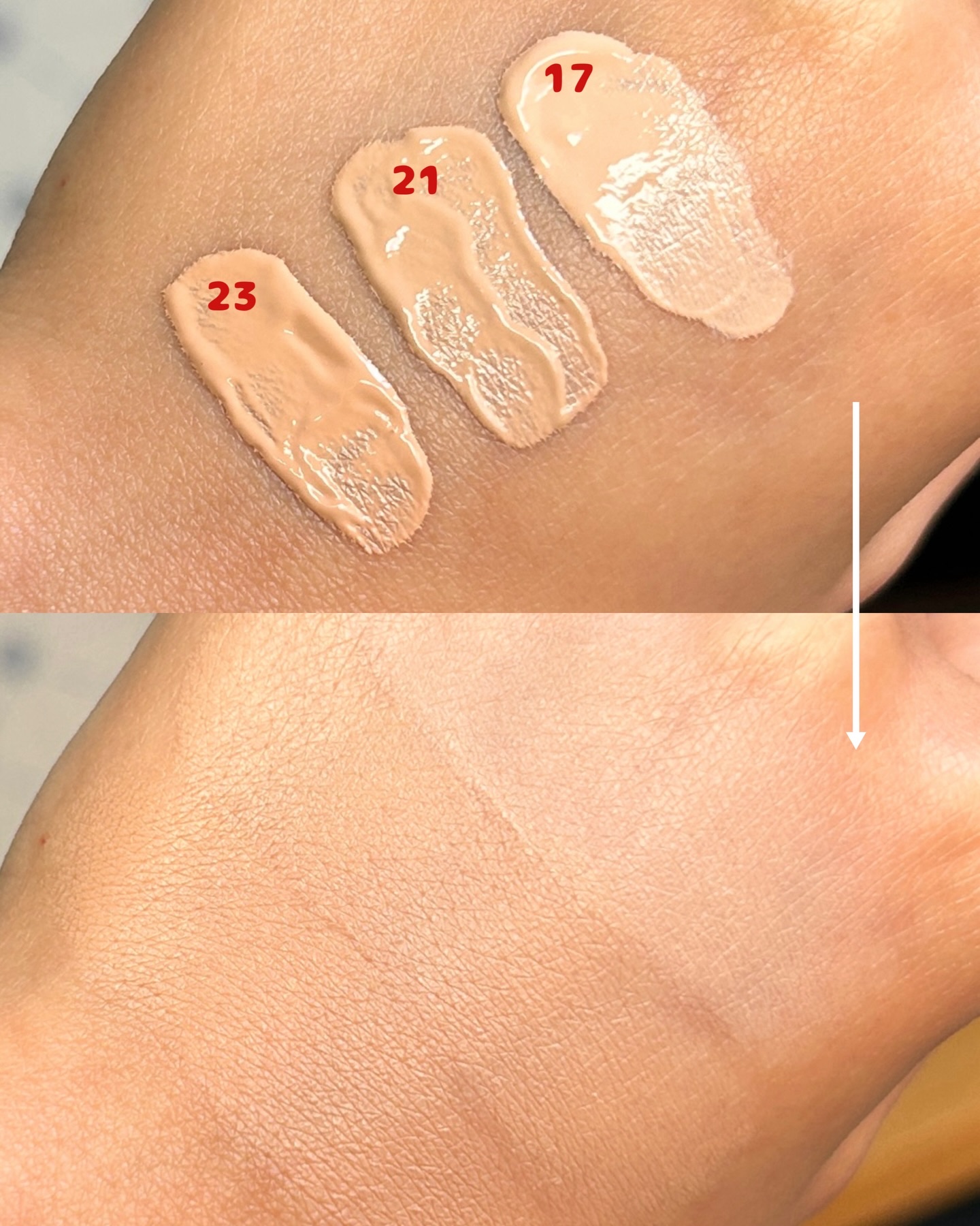 - <17号(ポーセリン)> 水、シクロペンタシロキサン、酸化チタン、プロパンジオール、メトキシケイヒ酸エチルヘキシル、サリチル酸ブチルオクチル、セチルPEG/PPG-10/1ジメチコン、BG、マイカ、炭酸ジエチルヘキシル、ナイアシンアミド、ジメチコン、イソドデカン、ポリメチルシルセスキオキサン、硫酸Mg、メタクリル酸メチルクロスポリマー、ジステアルジモニウムヘクトライト、酸化鉄、カプリリルジメチコンエトキシグルコシド、水酸化AI、ステアリン酸、ジメチコンクロスポリマー、セスキオレイン酸ソルビタン、トリエトキシカプリリルシラン、安息香酸Na、ラウロイルリシン、酢酸トコフェロール、炭酸プロピレン、ソルビン酸K、アルガニアスピノサ核油、アボカド油、アーモンド油、ポリヒドロキシステアリン酸、エチレンジアミンジコハク酸3Na、アデノシン、パルミチン酸エチルヘキシル、ミリスチン酸イソプロピル、イソステアリン酸、レシチン、ツバキ花エキス、ポリリシノレイン酸ポリグリセリル-3、ヨモギ葉エキス、1,2-ヘキサンジオール、アスコルビン酸、アルブチン、グリセリン、チャ葉エキス、ヒアルロン酸、加水分解ヒアルロン酸、ヒアルロン酸Na、ツボクサエキス、ローブッシュブルーベリー果実エキス、オウゴン根エキス、ポリクオタニウム-51、コメ発酵液、ダマスクバラ花エキス、コラーゲンエキス、加水分解カイメン、フェノキシエタノール、セラミドNP <23号(サンド)> 水、シクロペンタシロキサン、酸化チタン、プロパンジオール、メトキシケイヒ酸エチルヘキシル、サリチル酸ブチルオクチル、セチルPEG/PPG-10/1ジメチコン、BG、マイカ、炭酸ジエチルヘキシル、ナイアシンアミド、ジメチコン、イソドデカン、ポリメチルシルセスキオキサン、硫酸Mg、メタクリル酸メチルクロスポリマー、ジステアルジモニウムヘクトライト、酸化鉄、カプリリルジメチコンエトキシグルコシド、水酸化AI、ステアリン酸、ジメチコンクロスポリマー、セスキオレイン酸ソルビタン、トリエトキシカプリリルシラン、安息香酸Na、ラウロイルリシン、酢酸トコフェロール、炭酸プロピレン、ソルビン酸K、アルガニアスピノサ核油、アボカド油、アーモンド油、ポリヒドロキシステアリン酸、エチレンジアミンジコハク酸3Na、アデノシン、パルミチン酸エチルヘキシル、ミリスチン酸イソプロピル、イソステアリン酸、レシチン、ツバキ花エキス、ポリリシノレイン酸ポリグリセリル-3、ヨモギ葉エキス、1,2-ヘキサンジオール、アスコルビン酸、アルブチン、グリセリン、チャ葉エキス、ヒアルロン酸、加水分解ヒアルロン酸、ヒアルロン酸Na、ツボクサエキス、ローブッシュブルーベリー果実エキス、オウゴン根エキス、ポリクオタニウム-51、コメ発酵液、ダマスクバラ花エキス、コラーゲンエキス、加水分解カイメン、フェノキシエタノール、セラミドNP
