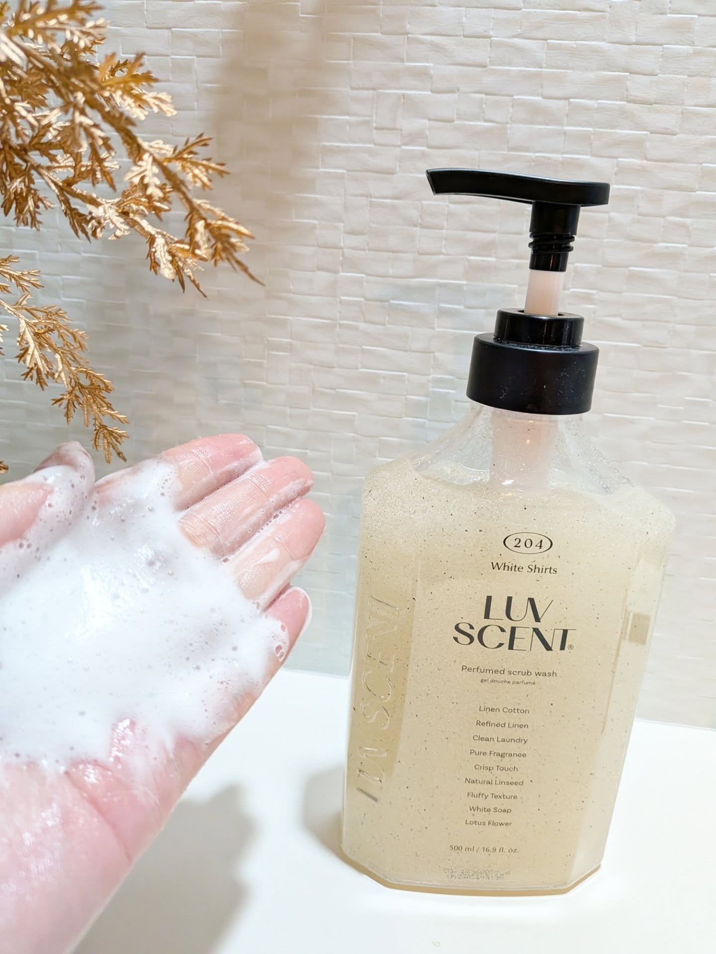 商品詳細情報LUV SCENT スクラブボディウォッシュ ホワイトシャツ リネンコットン