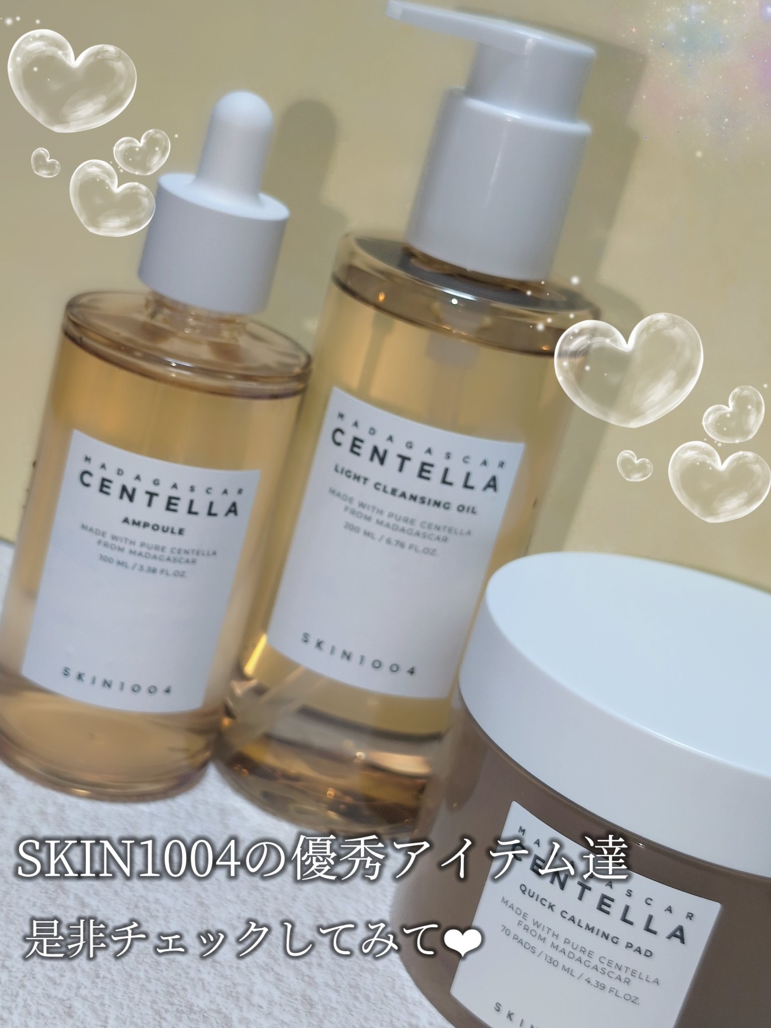 SKIN1004(スキンチョンサ)中でも人気のマダガスカルセンテララインのスキンケアたち✨ツボクサ由来のCICA成分が使われたお肌に優しい処方が特徴。クレンジングオイルとアンプル初めて使ったけどめちゃくちゃ気に入っちゃった…🧡𓊆センテラライト...