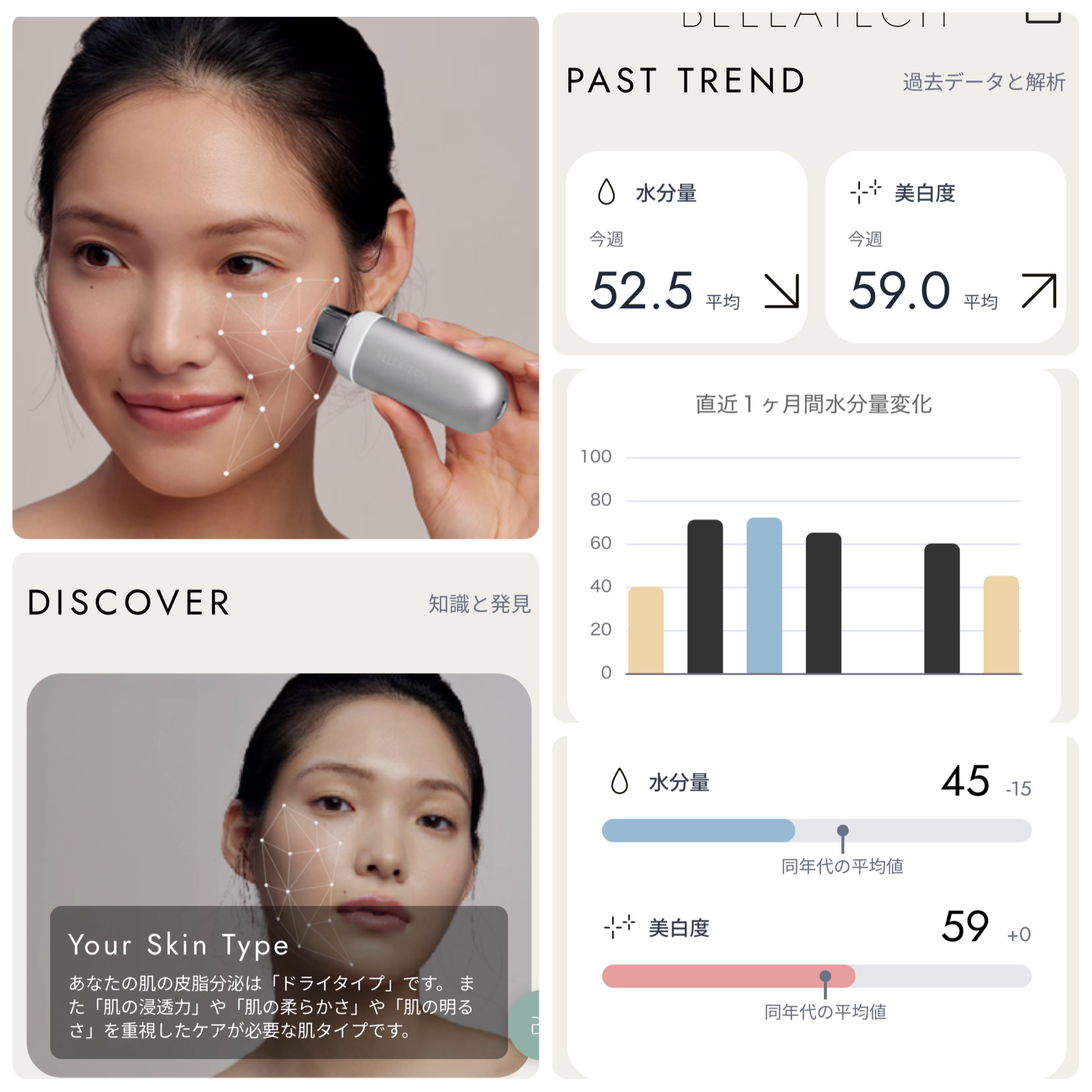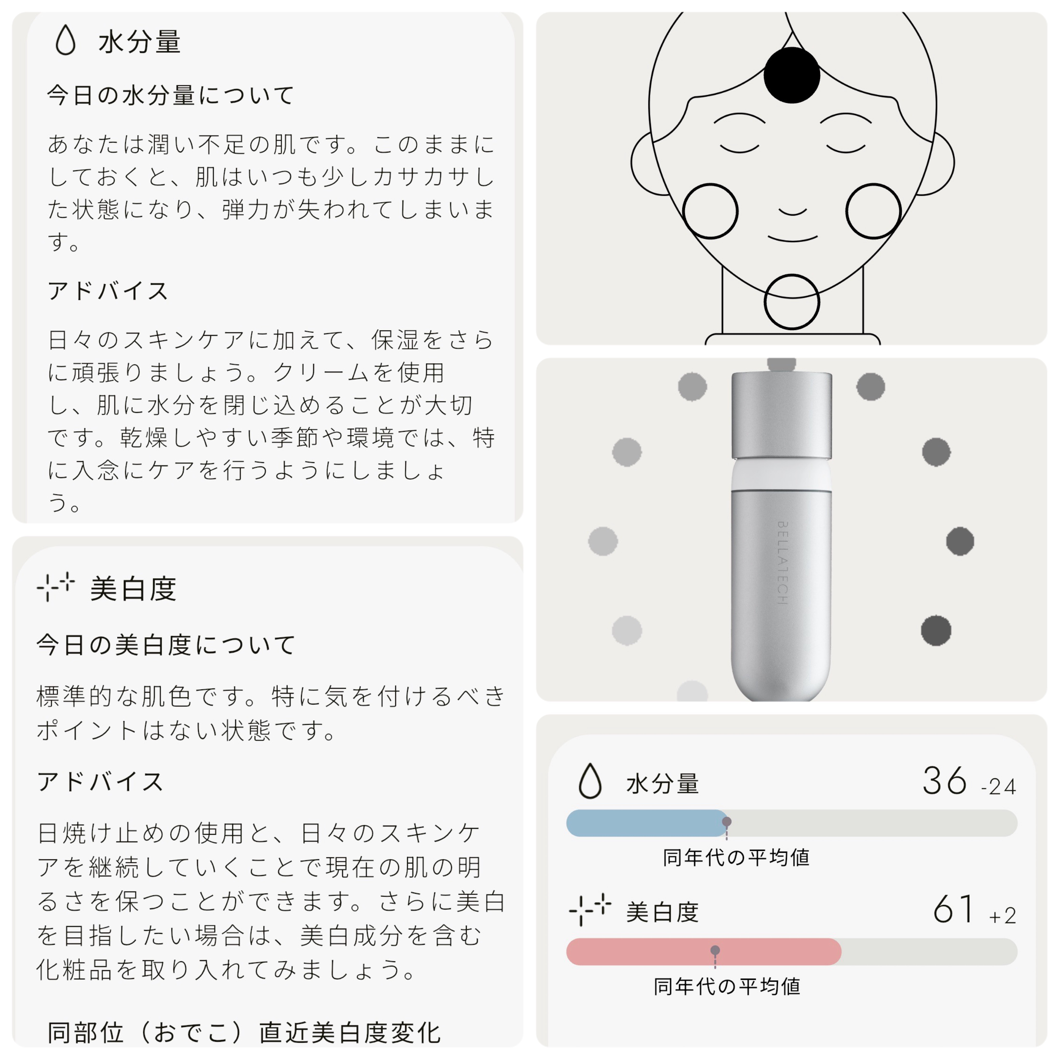 🏷️BELLATECHSKINCAREAISKINSCANNERAIで日々肌管理!4つの高感度センサーで肌状態を測定。潤い·毛穴·ハリ·キメ·美白、5つのポイントをチェック。肌の状態を測定しながらAIが肌を学習してスキンケア商品を提案してくれ...