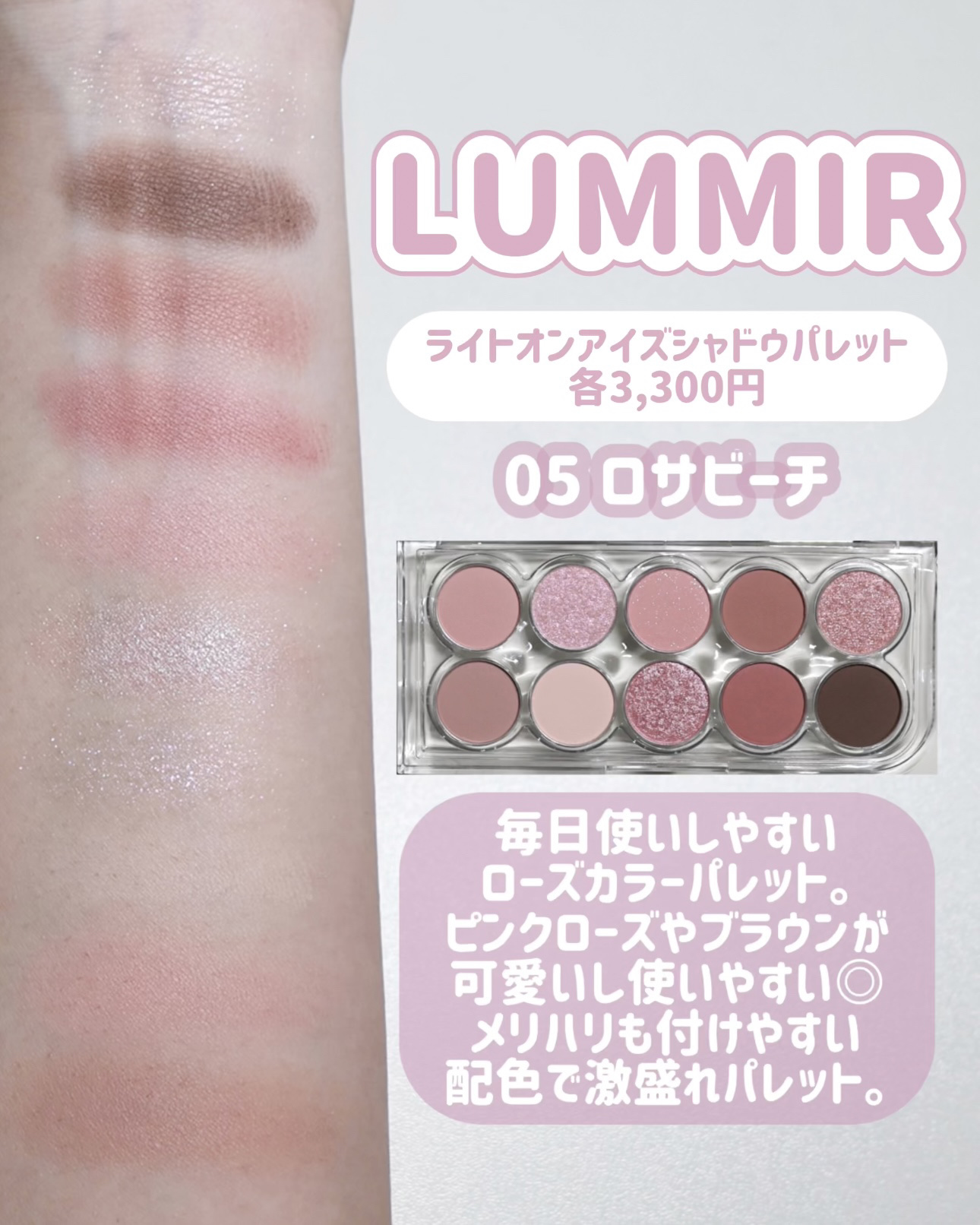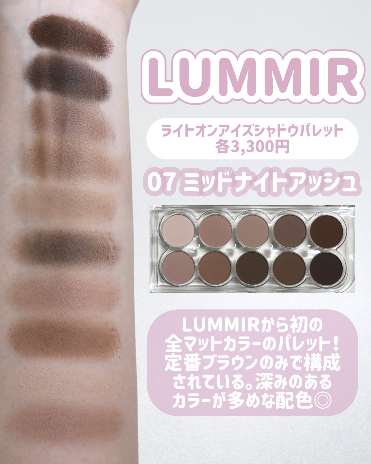 開けた瞬間うっとり見とれてしまうくらい可愛い✨ LUMMIR ライトオンアイズシャドウパレット♥ 粉質が良く高密着で崩れにくく発色もバッチリ🙆♀️🤍 1つで色々なメイクが楽しめてお気に入りです☺️ 気になった方は公式さん @lummir.jp をチェックしてみてください♡⃛