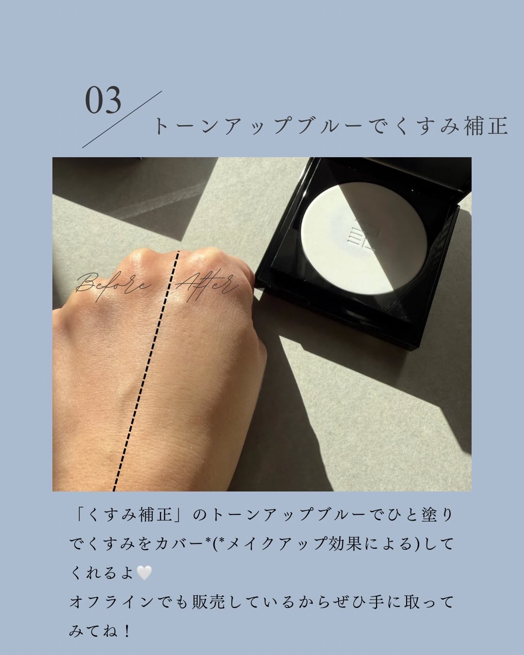 - もう粉で埋めない、「生肌パウダー」で呼吸する肌へ ヒアルロン酸配合の美容液パウダーが保湿しながらテカリ・くすみをカバーして、 24 時間*生美肌つづく。 <商品特性> ・[新感覚] 美容液生まれの「生パウダー」重ねても粉っぽさゼロを目指す 匕アル口ン酸美容液を固めて、液体から粉末に。より柔らかく、より細かく、より密着するパウダーで*、まるでクリームのようにとろける、新感覚のつけ心地。 *当社比 ・「トリプルブロック」技術、24時間*テカリ・くすみも気になりにくい 独自に開発したオイルコントロールファクターSmartLockBLUE**は、より的確に皮脂を吸着、よりしっかりテカリを抑え、より根本的に製品の酸化を防ぐ *** 。水分をたっぷり含んだハイドロゲル層で、肌本来の潤いをキープしながら、テカリとベースメイクの酸化によるくすみをブロック。 *自社調べ **フラーレン(製品の抗酸化剤)、ヒドロキシアパタイト(吸着) ***当社比 ・「360° 光拡散」透明感あふれる*、まるで発光肌 透明感あふれる*光反射粒子とソフトフォーカス粒子のW効果で、360°自然に光を反射。気になる毛穴や色ムラをカバーして、透明感のあるワントーン明るい肌*へ。 ・「くすみ補正」トーンアップブルーを採用し、ひと塗りでくすみをカバー 15万人のアジア人の肌色データを分析することで、日本人の肌に合った補正カラー「トーンアッププルー」を開発。くすみ部分をふわっと自然に飛ばして、明るく澄んだ肌印象に。 *メイクアップ効果による