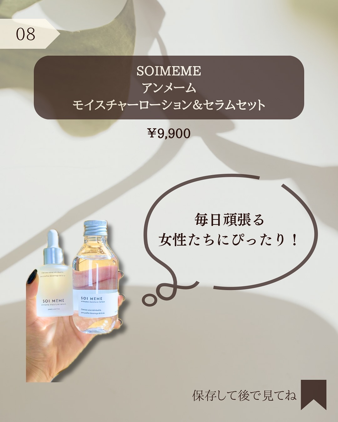 @soimeme様SOIMEME(ソワメーム)=「私らしく」今年の4月に誕生したスキンケアブランドです🌿.*🏷️アンメー厶モイスチャーローション&セラムセットローションもセラムも塗布後肌にぐんぐん浸透していくのがわかりしっとりとうるおった肌に...