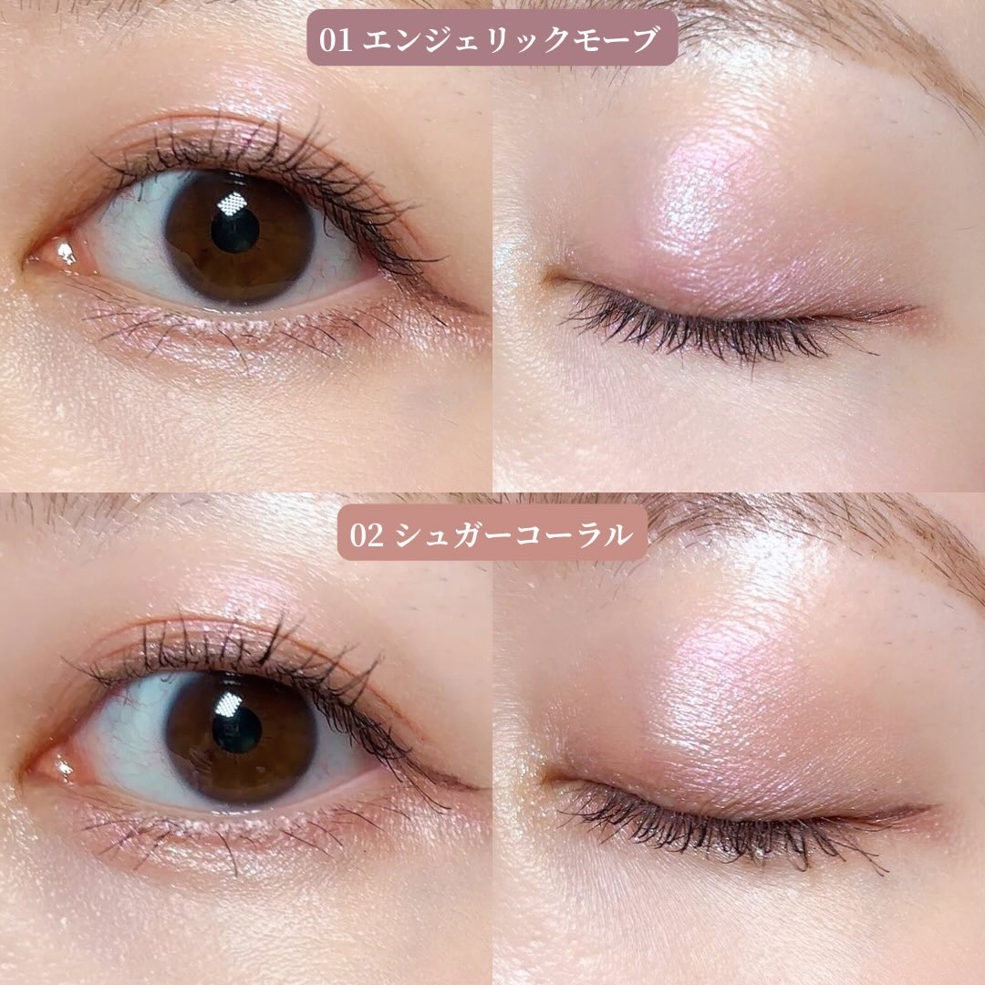- <01 エンジェリックモーブ> 合成フルオロフロゴパイト、タルク、酸化チタン、フェニルトリメチコン、ホウケイ酸(Ca/Al)、リンゴ酸ジイソステアリル、シリカ、ホウケイ酸(Ca/チタン)、マイカ、ステアリン酸亜鉛、水添ポリイソブテン、ダイマージリノール酸ダイマージリノレイルビス(ベヘニル/イソステアリル/フィトステリル)、ジメチコン、酸化鉄、グンジョウ、1,2-ヘキサンジオール、イソノナン酸イソノニル、ジ安息香酸PG、トリエトキシカプリリルシラン、エチルヘキシルグリセリン、ジメチコンクロスポリマー、酸化スズ、水酸化Al、ミリスチン酸Al、赤226 <02 シュガーコーラル> タルク、合成フルオロフロゴパイト、酸化チタン、ホウケイ酸(Ca/Al)、フェニルトリメチコン、ホウケイ酸(Ca/チタン)、リンゴ酸ジイソステアリル、マイカ、シリカ、ステアリン酸亜鉛、水添ポリイソブテン、ダイマージリノール酸ダイマージリノレイルビス(ベヘニル/イソステアリル/フィトステリル)、ジメチコン、酸化鉄、1,2-ヘキサンジオール、イソノナン酸イソノニル、ジ安息香酸PG、トリエトキシカプリリルシラン、エチルヘキシルグリセリン、ジメチコンクロスポリマー、酸化スズ、水酸化Al、ミリスチン酸Al、赤226、グンジョウ