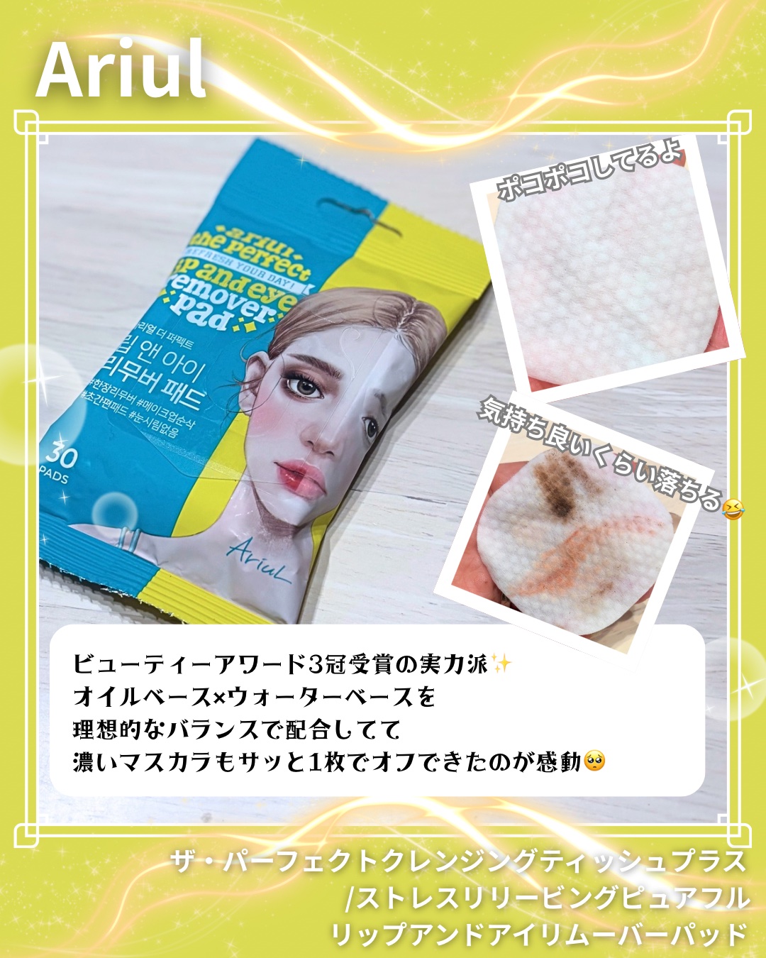 @ariul_jp様にお声がけいただき、⭐️ザ・パーフェクトクレンジングティッシュプラス💛ストレスリリービングピュアフルリップアンドアイリムーバーパッド30枚入をお試しさせていただきました。⭐️ザ・パーフェクトクレンジングティッシュプラスウォ...