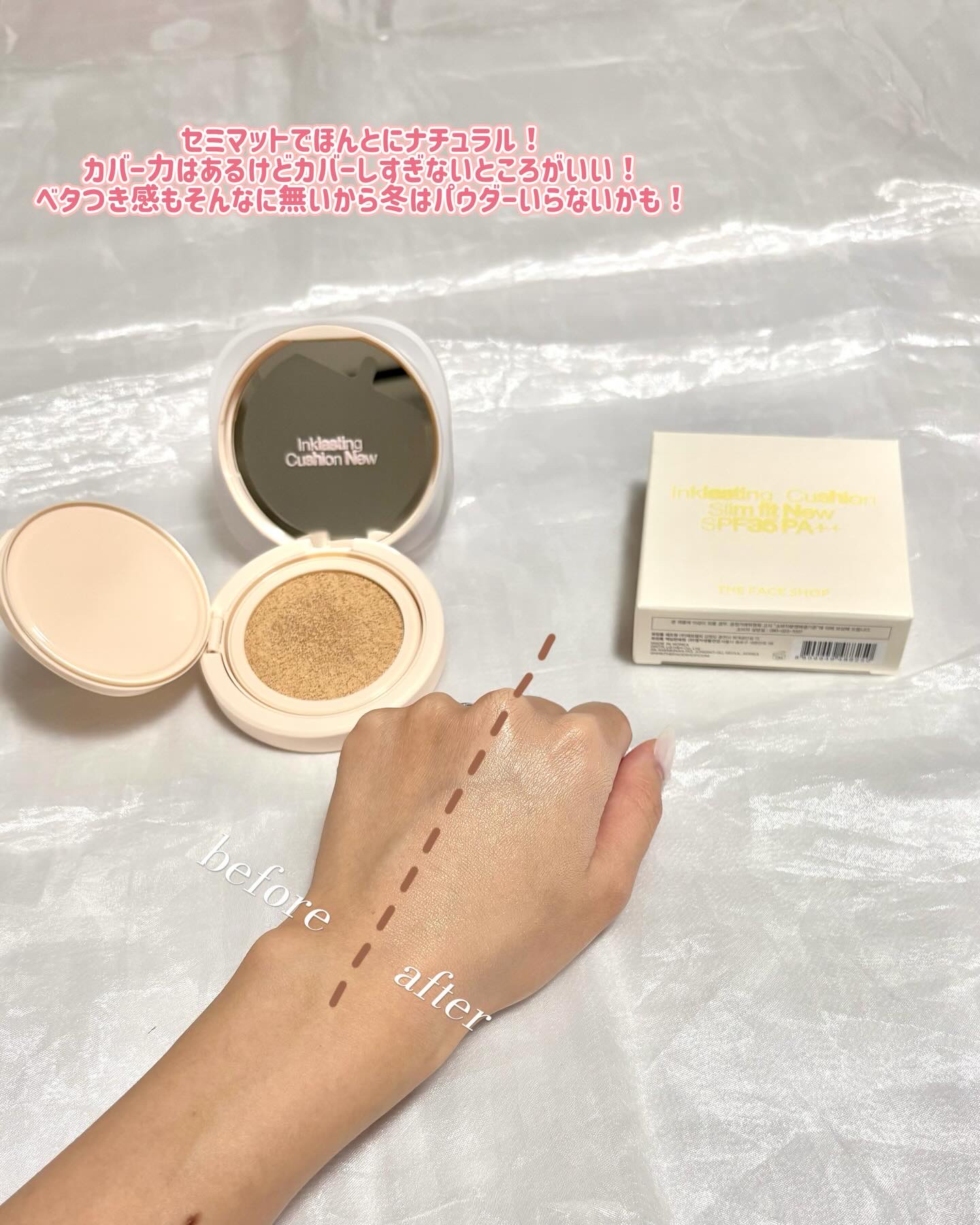 #PR最近見つけたクッション💎TheFaceShopインクラスティングスリムフィットNEWクッション✨@lgbeauty_jp塗った瞬間インクのように軽く肌にフィットして毛穴も色ムラもナチュラルにカバー💖オイルコントロールパウダー入りでマスク...