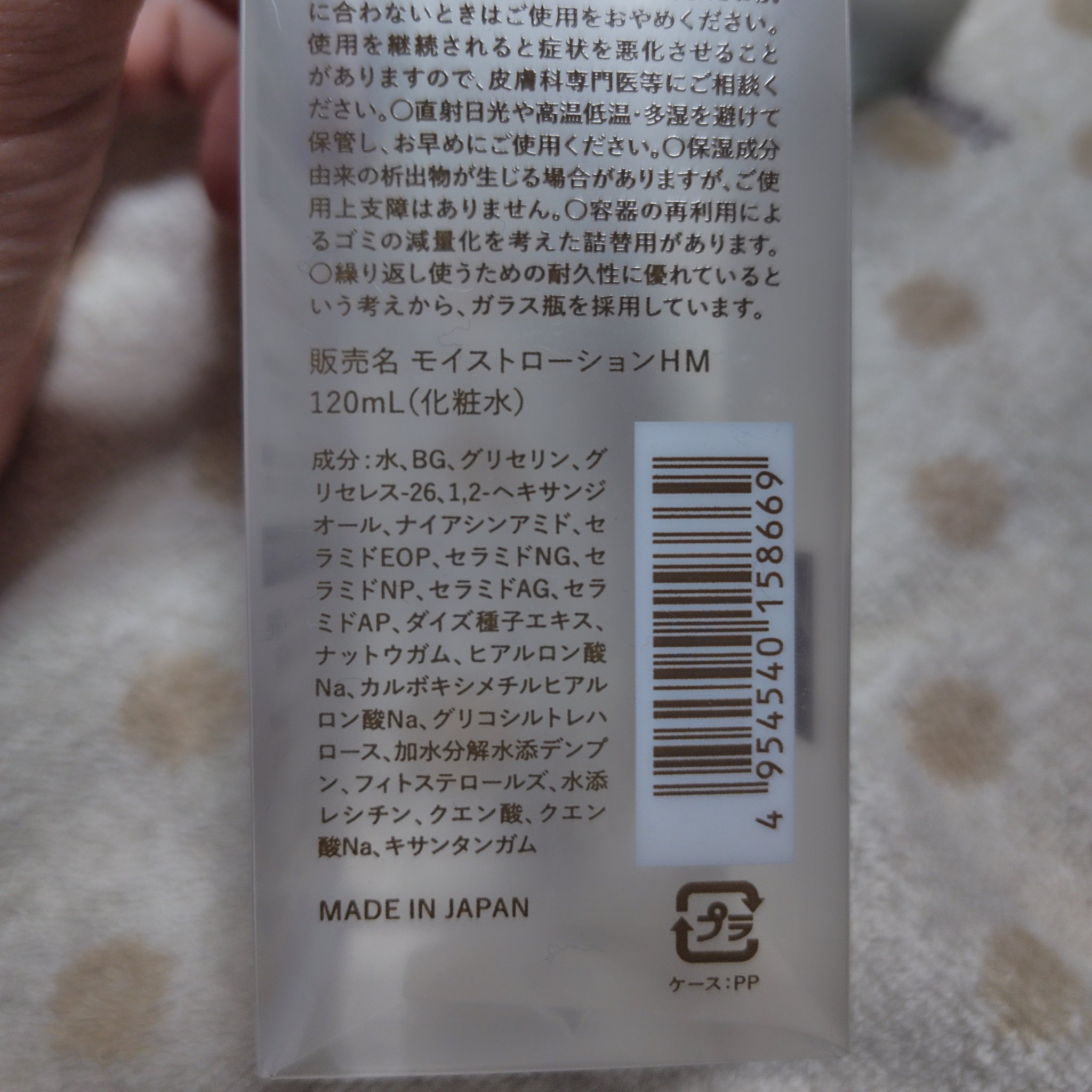 - <肌をうるおす保湿浸透水 モイストリッチ> 水、BG、グリセリン、グリセレス-26、1,2-ヘキサンジオール、ナイアシンアミド、セラミドEOP、セラミドNG、セラミドNP、セラミドAG、セラミドAP、ダイズ種子エキス、ナットウガム、ヒアルロン酸Na、カルボキシメチルヒアルロン酸Na、グリコシルトレハロース、加水分解水添デンプン、フィトステロールズ、水添レシチン、クエン酸、クエン酸Na、キサンタンガム